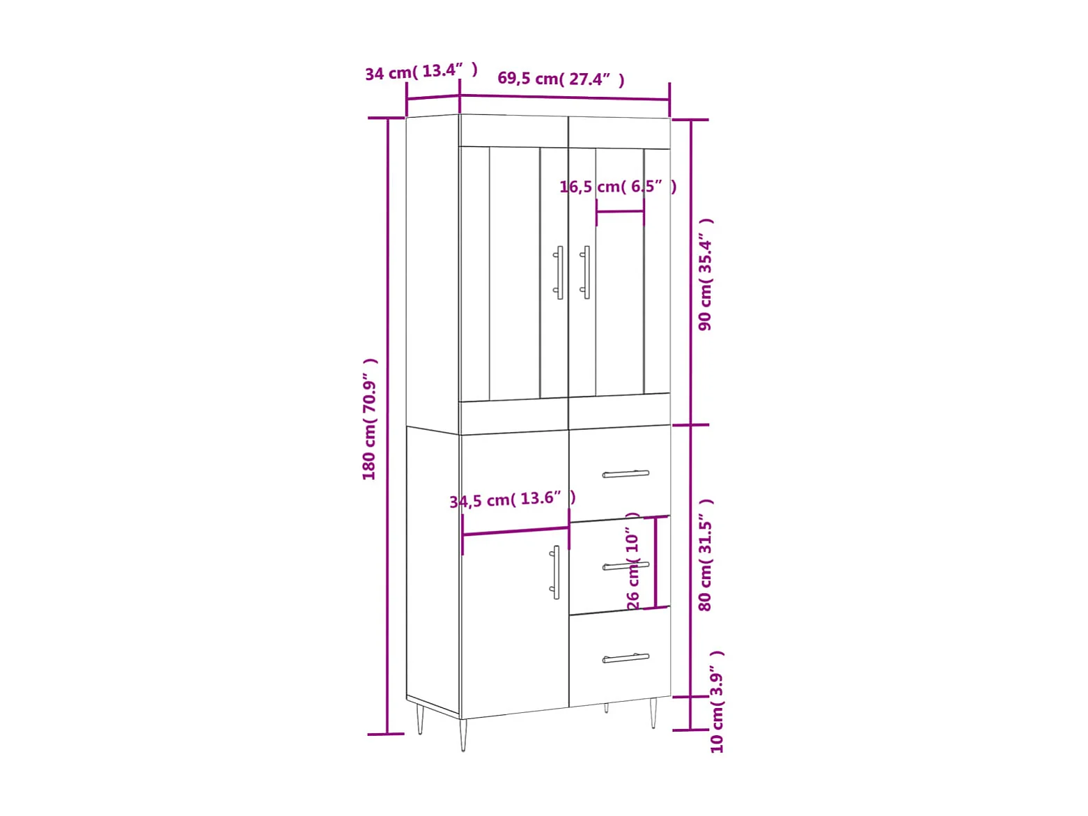 Credenza Grigio Sonoma 69,5x34x180 cm in Legno Multistrato