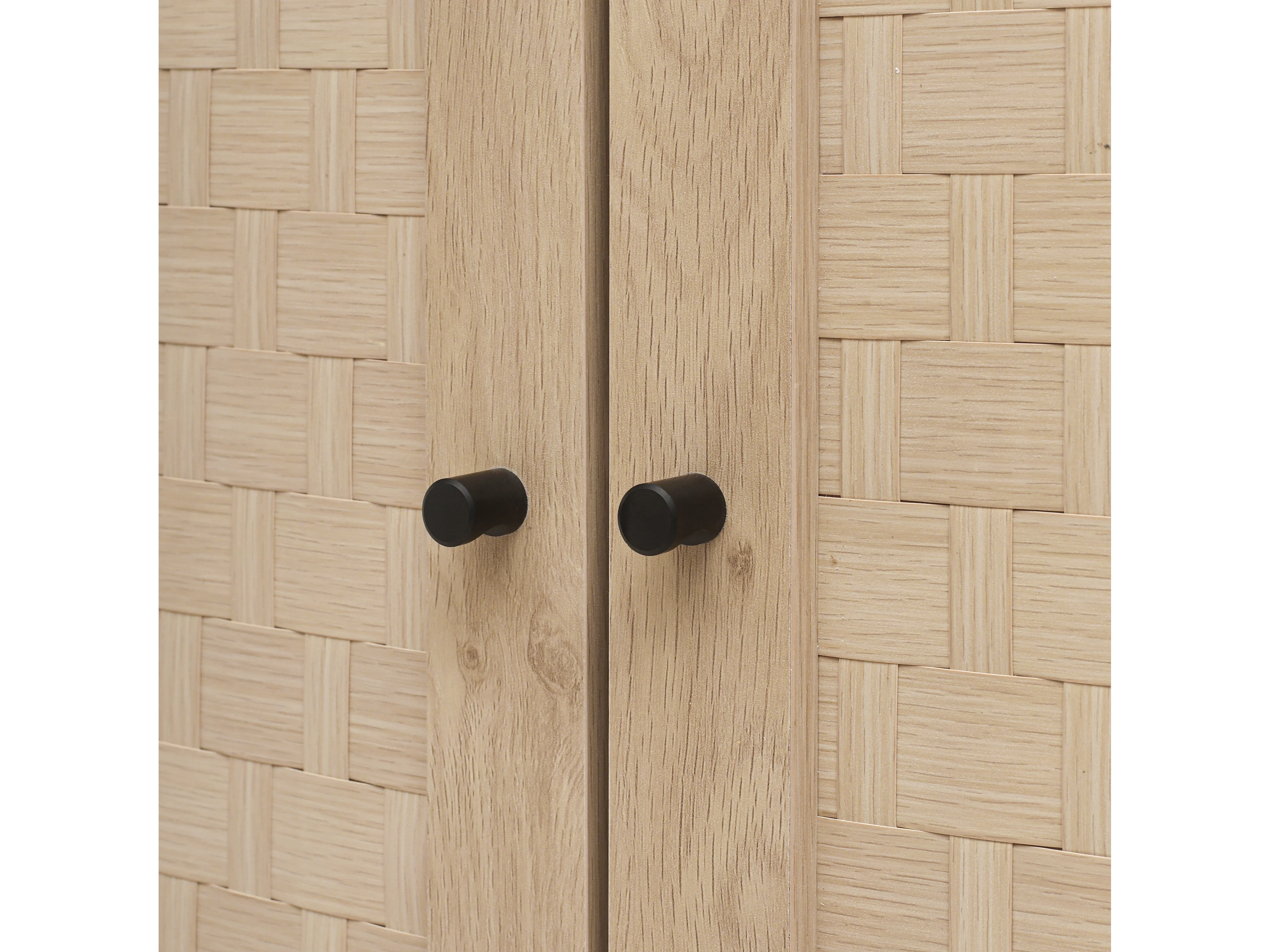 Credenza in legno naturale da 80 cm, 3 cassetti con frontali in rattan, soggiorno/camera da letto/ufficio