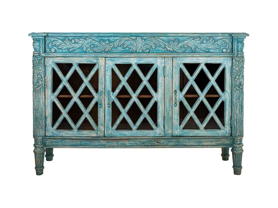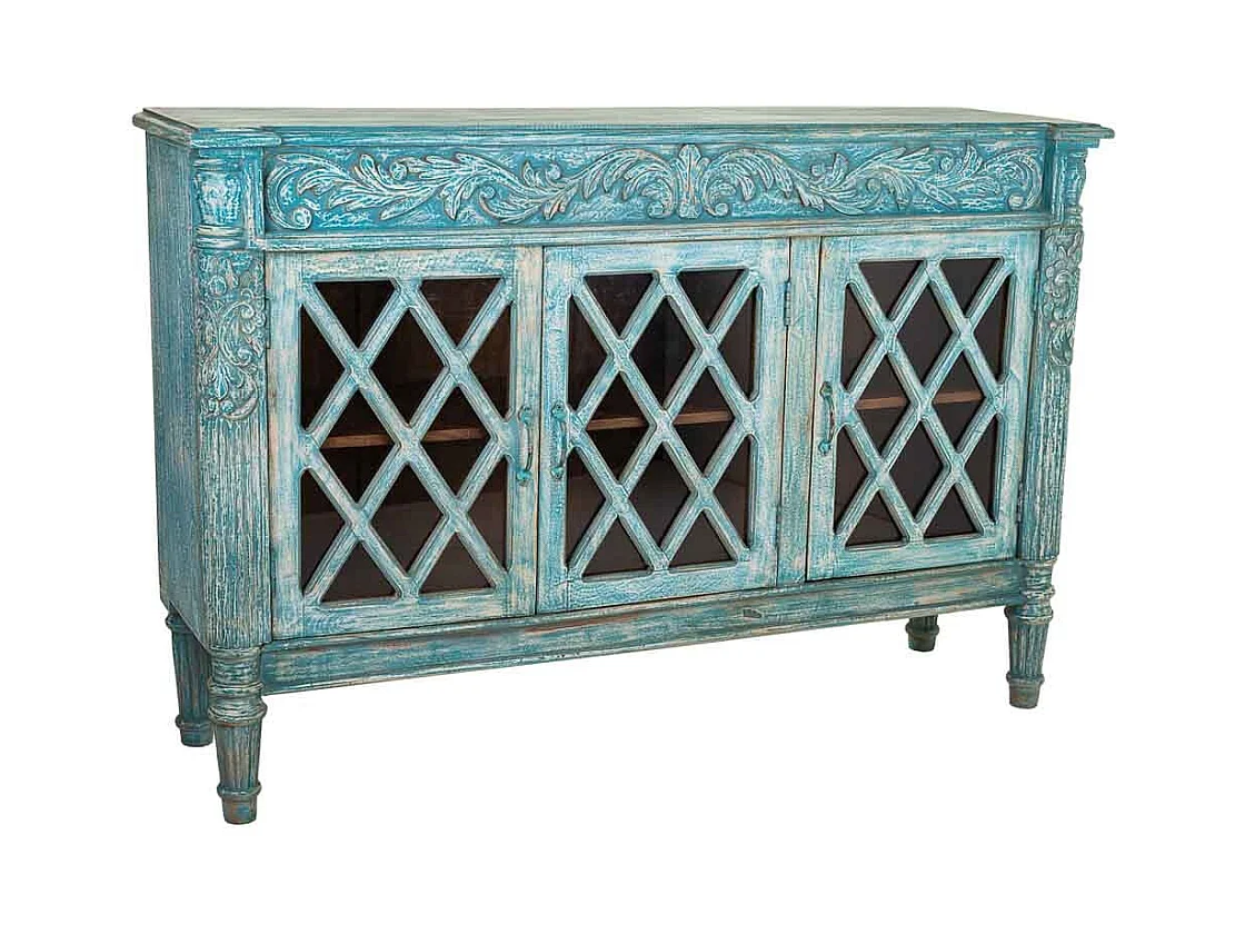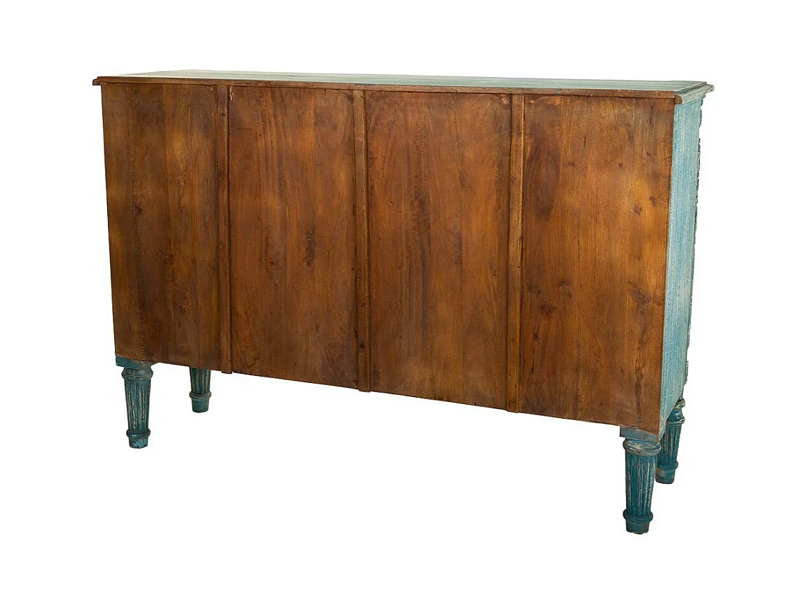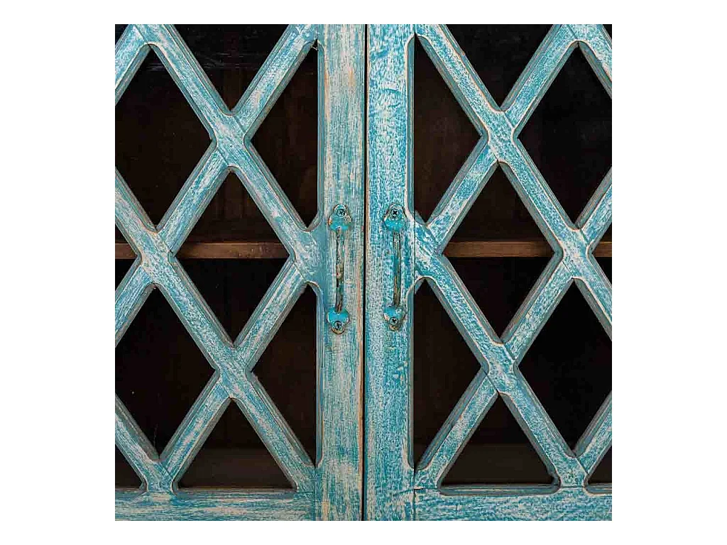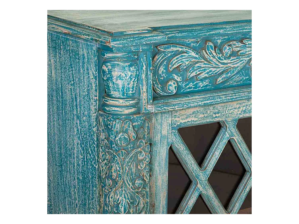 Credenza in legno di mango dipinta a mano con 2 cassetti e ante