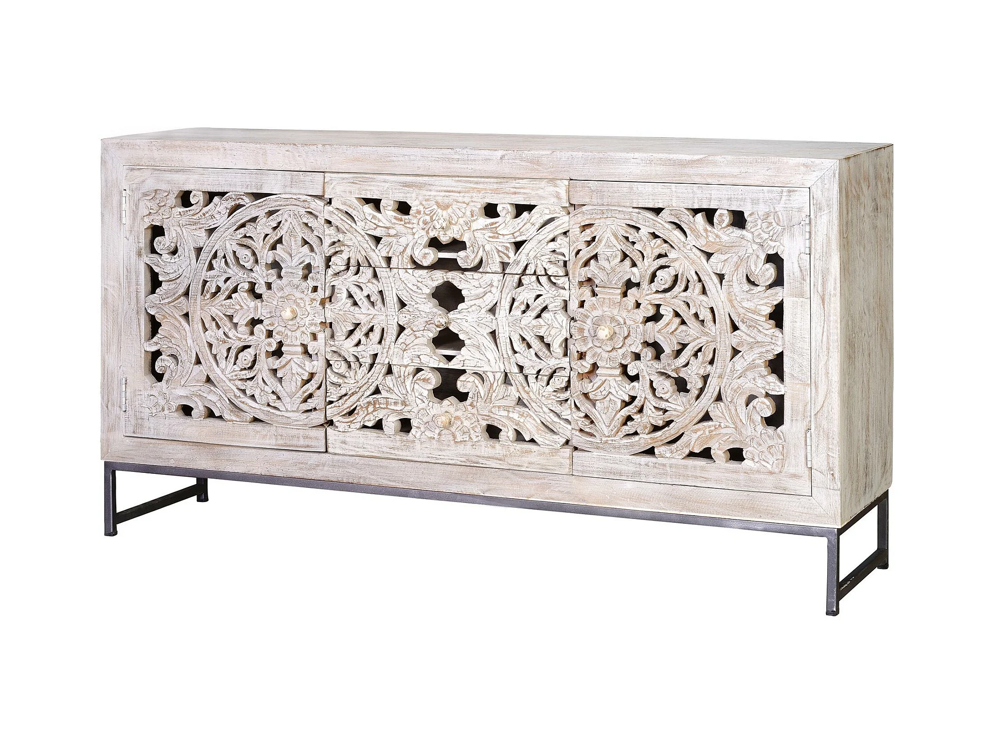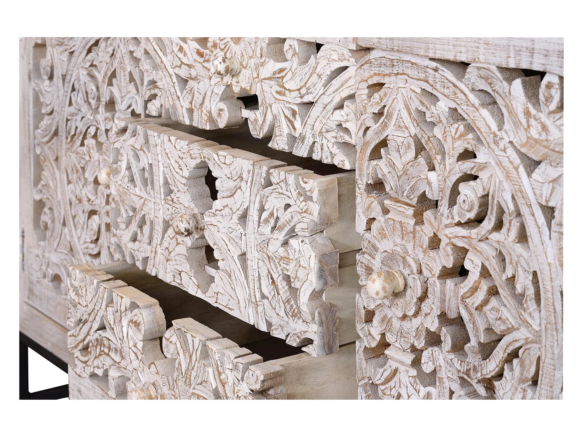 Credenza in massello di mango bianco invecchiato