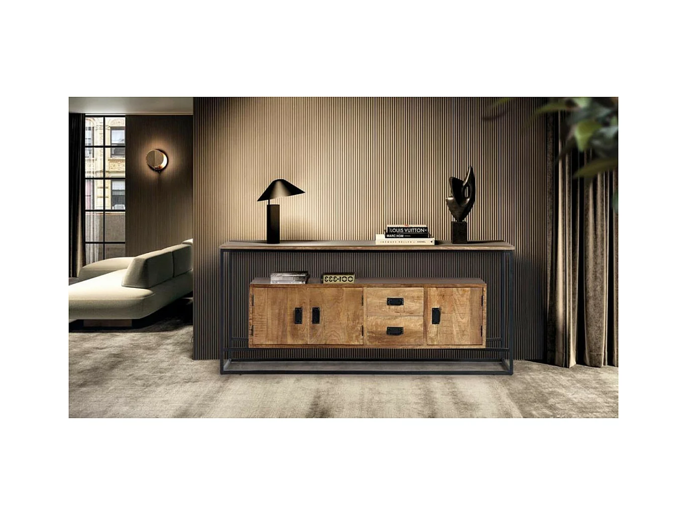 Credenza industriale in legno di mango e dettagli in metallo nero Multicolor .85x40x160 Giner y Colomer