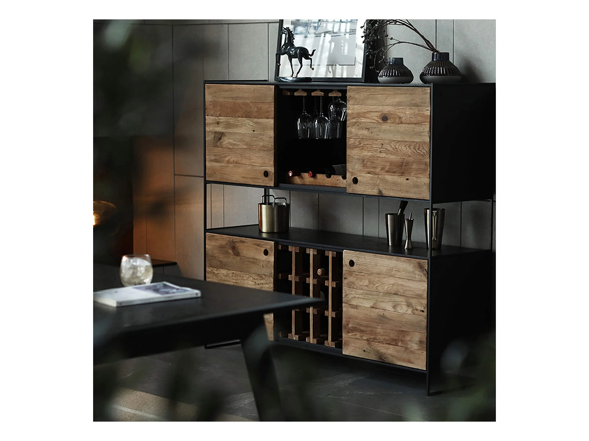 MilaniHome.it - Mobile con decoro wengé con 4 ante in legno di mango con struttura in ferro cm 180x40x85 hdi coloreMarrone