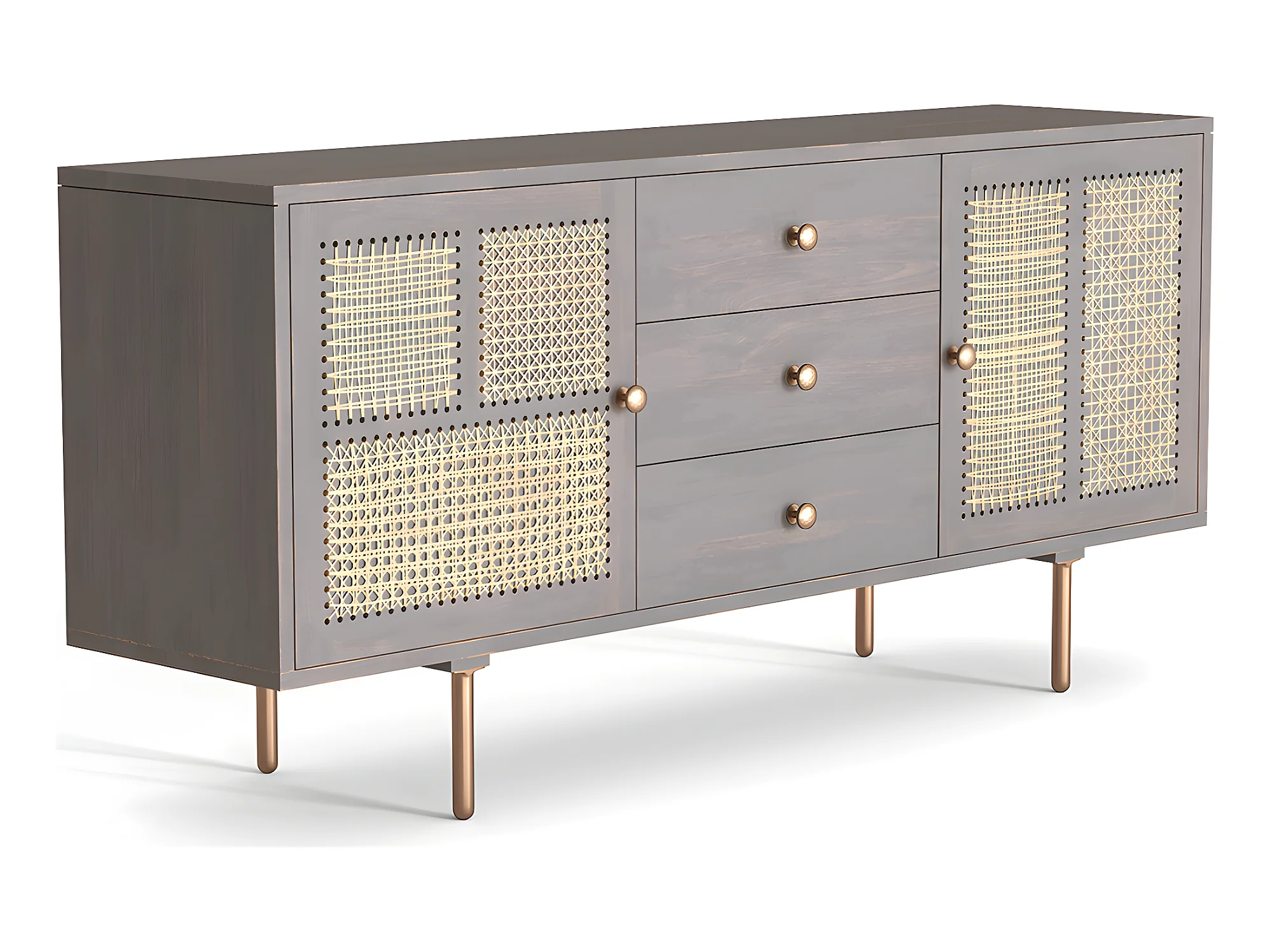 Credenza Grigia 111x34x75 cm in Legno Massello di Pino