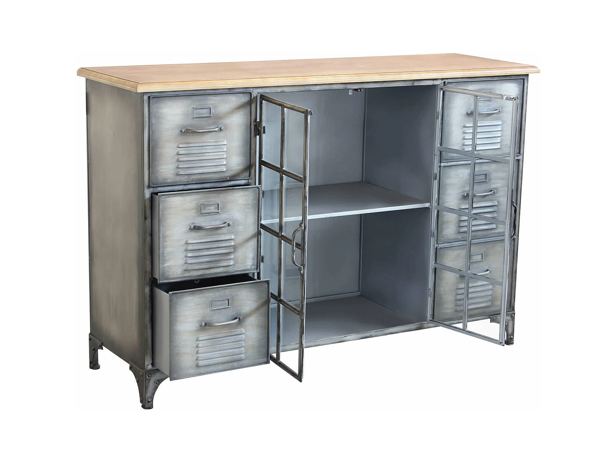 MilaniHome.it - Credenza In Metallo Ferro Industrial Mobile Madia Per Arredamento Soggiorno, Sala Da Pranzo, Salotto Industriale , Cm 116x40x77 Hdi coloreGrigio
