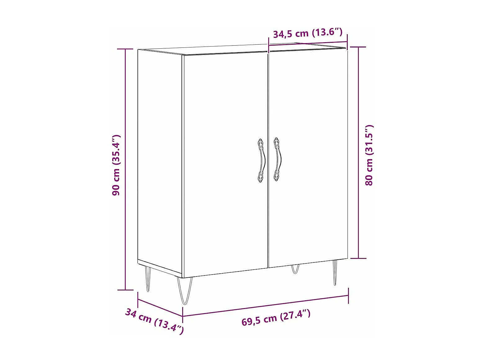 Credenza in rovere nero 69,5x34x90 cm in legno ingegnerizzato