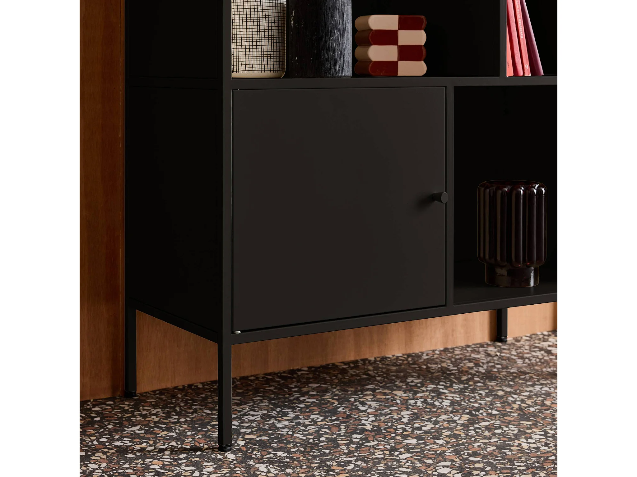 Credenza industriale in metallo con 6 scomparti, nero