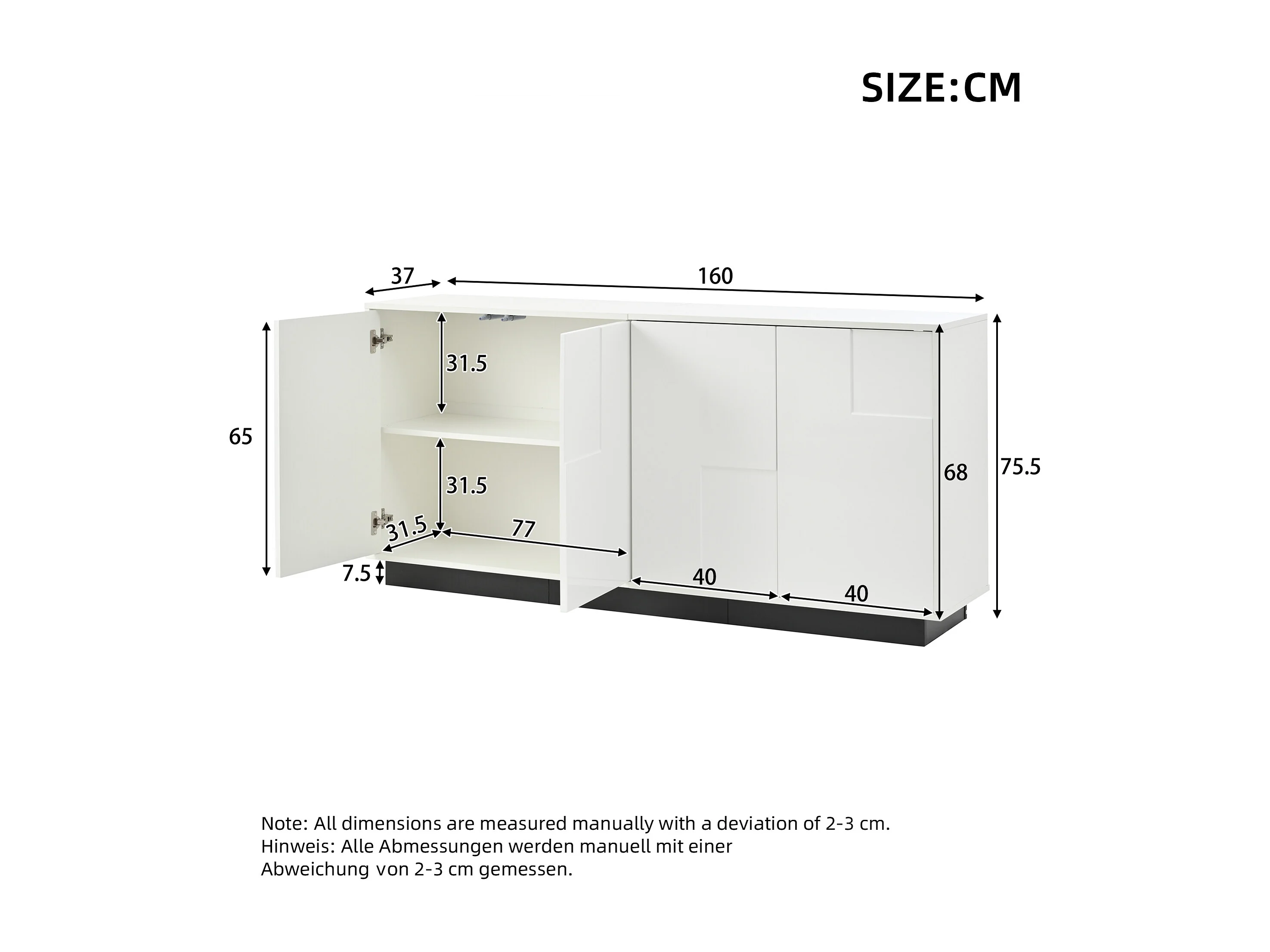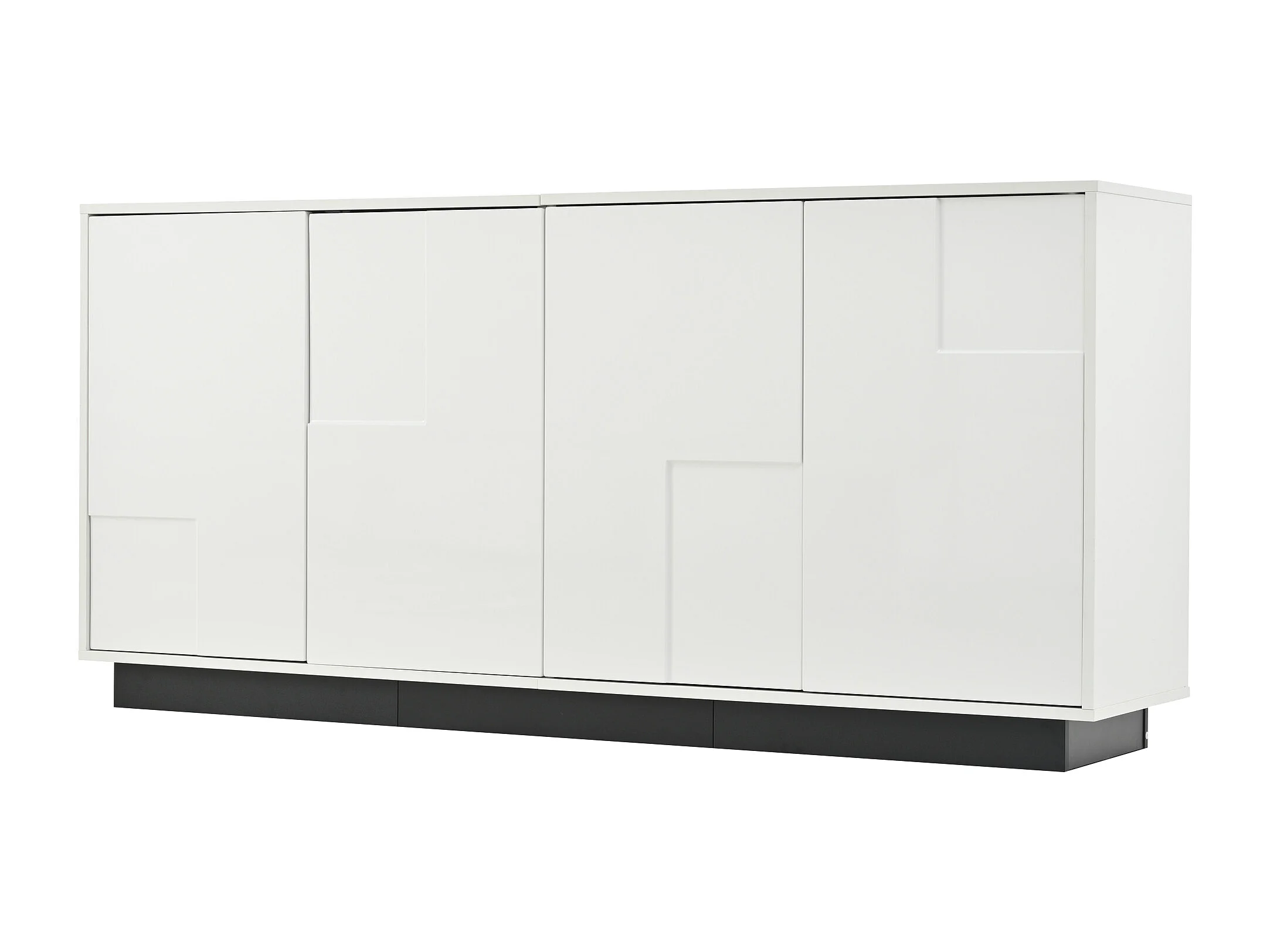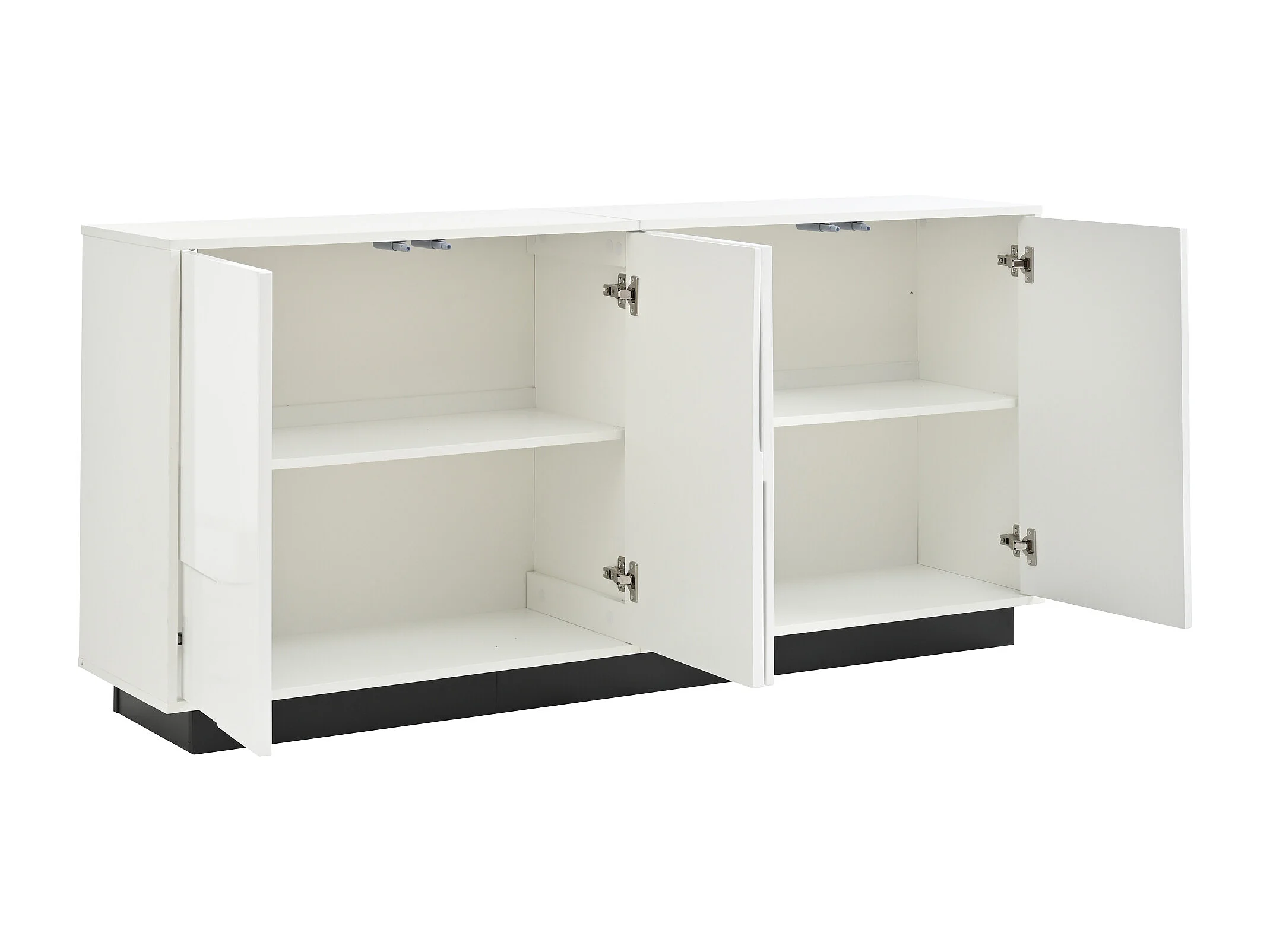 Credenza laccata lucida con 4 ante - Legno PB - Bianco e nero