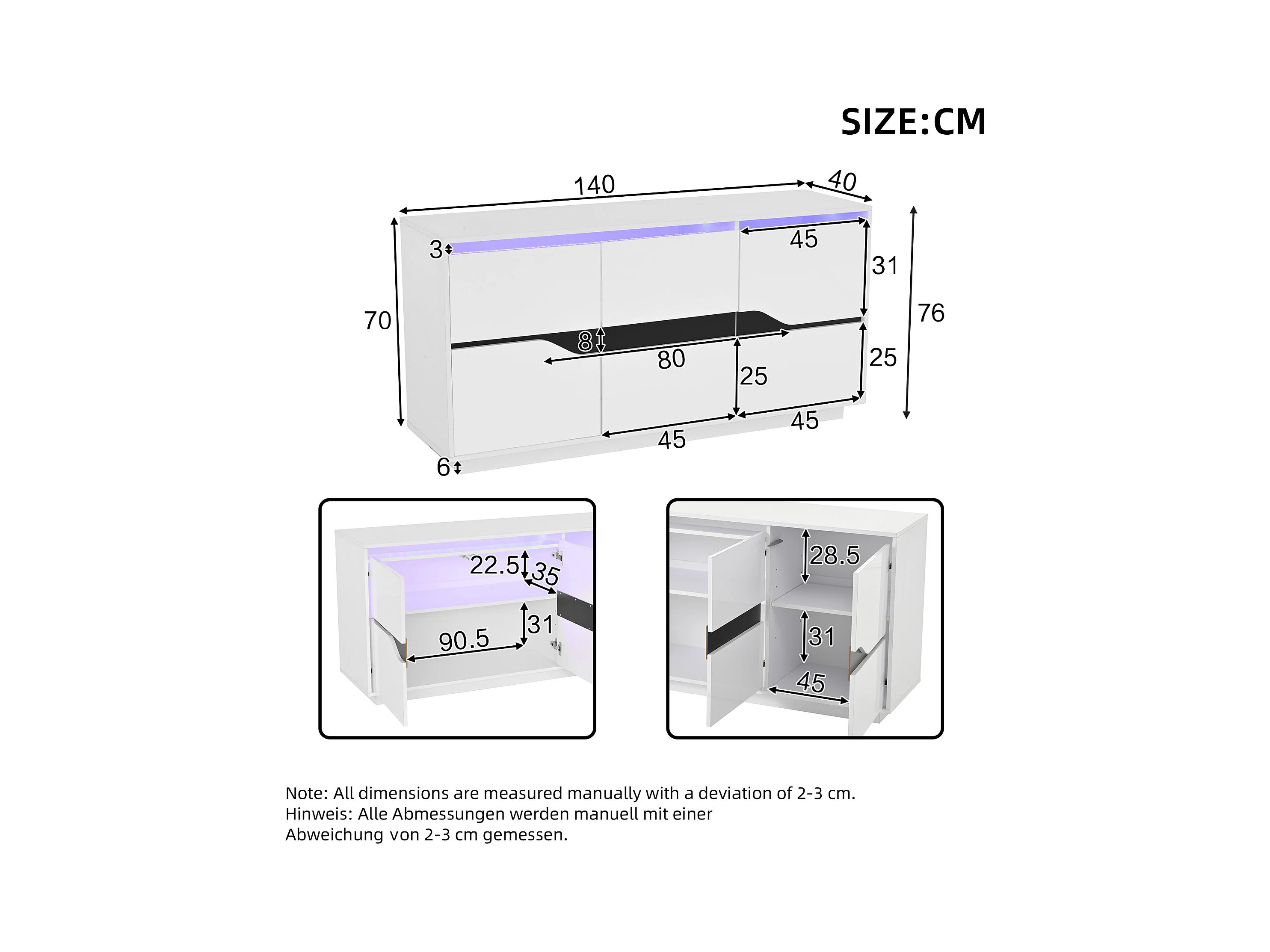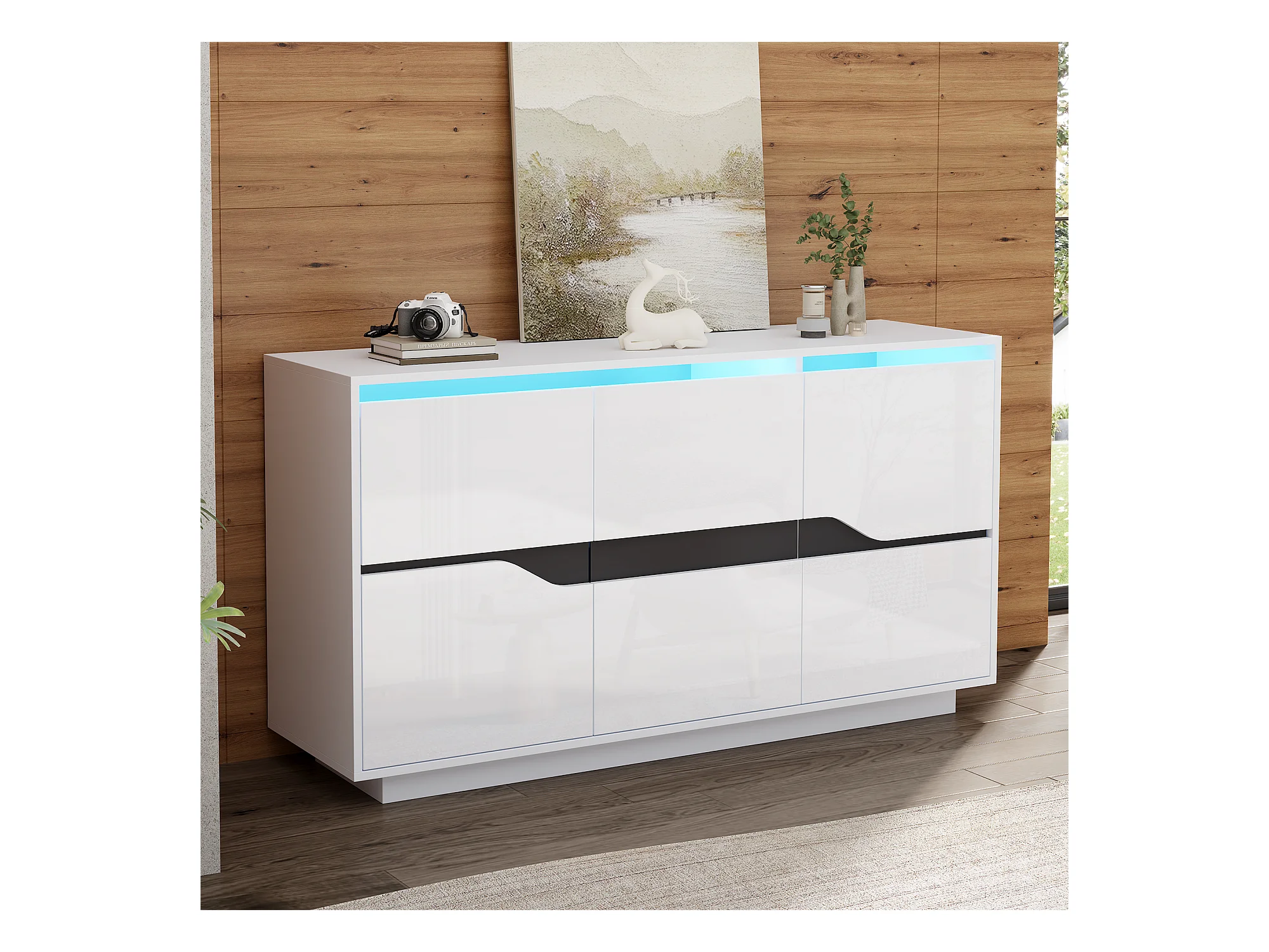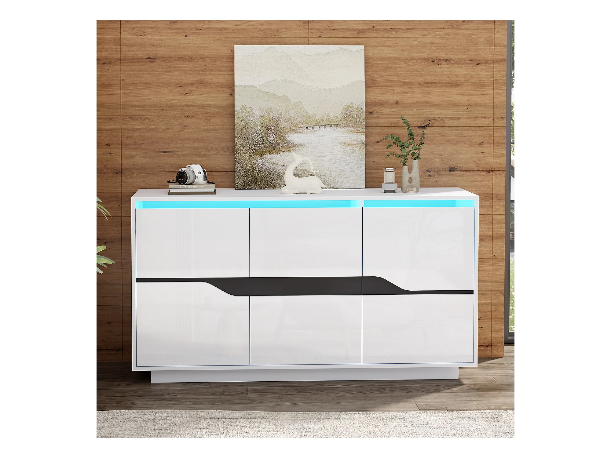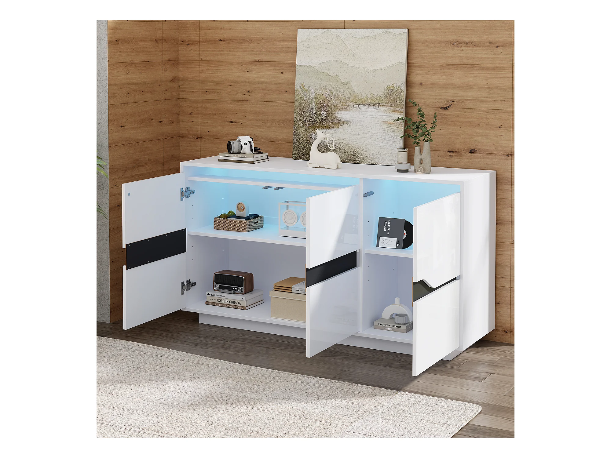Credenza LED con 3 ante e ripiani regolabili – Bianco e nero