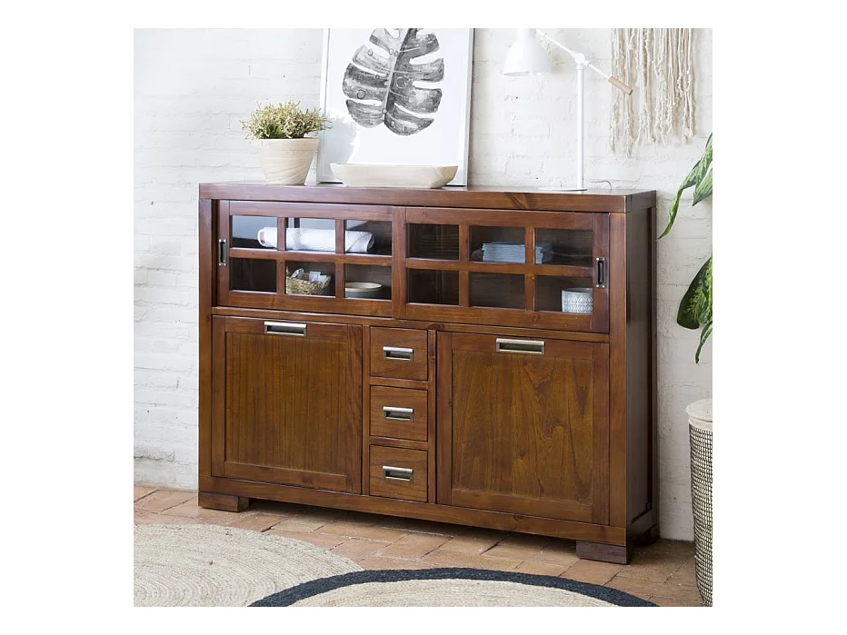 Credenza legno massello e impiallacciatura naturale di mindi Tek 30x105