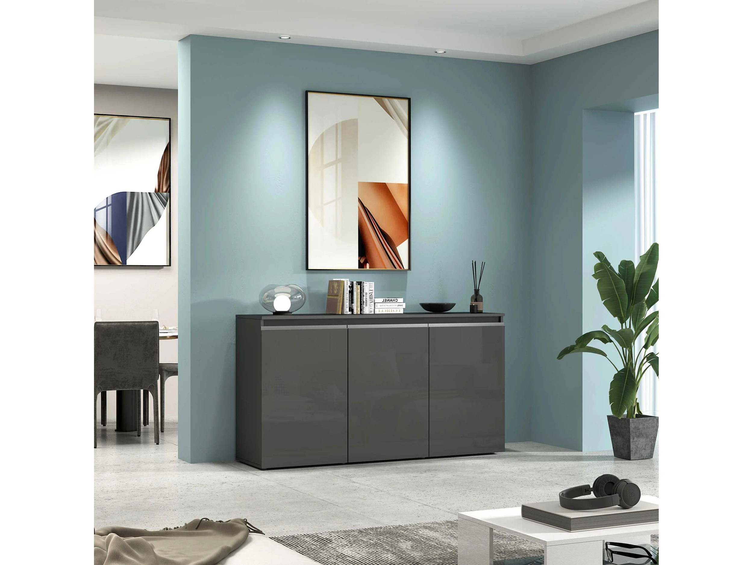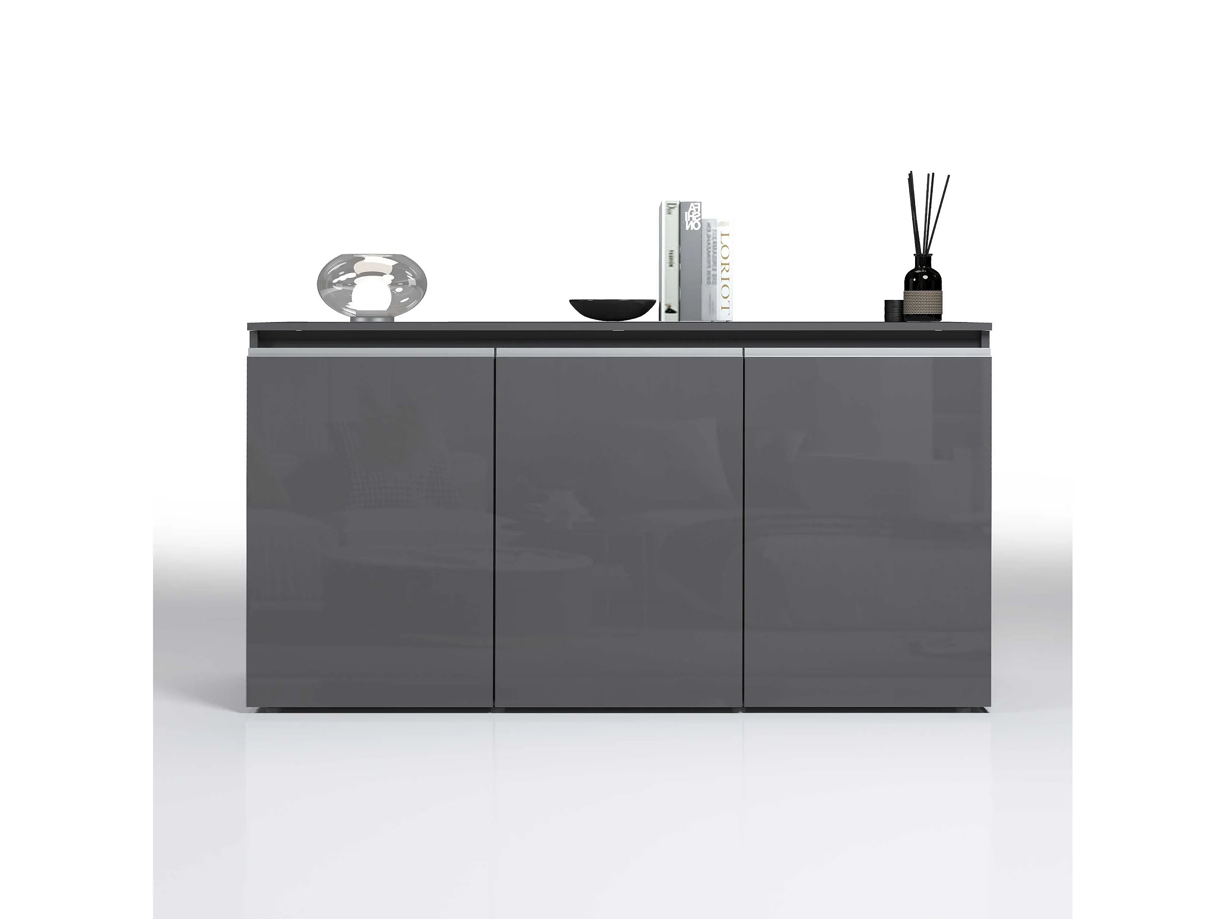 Credenza Magic 3 ante antracite lucido 150x40x80 cm