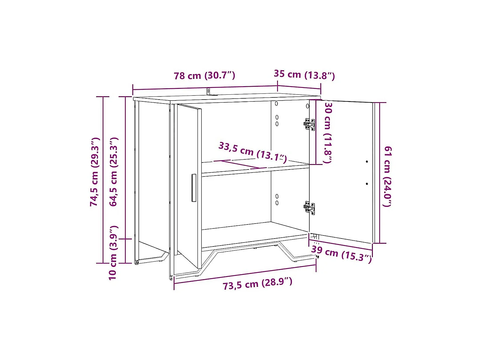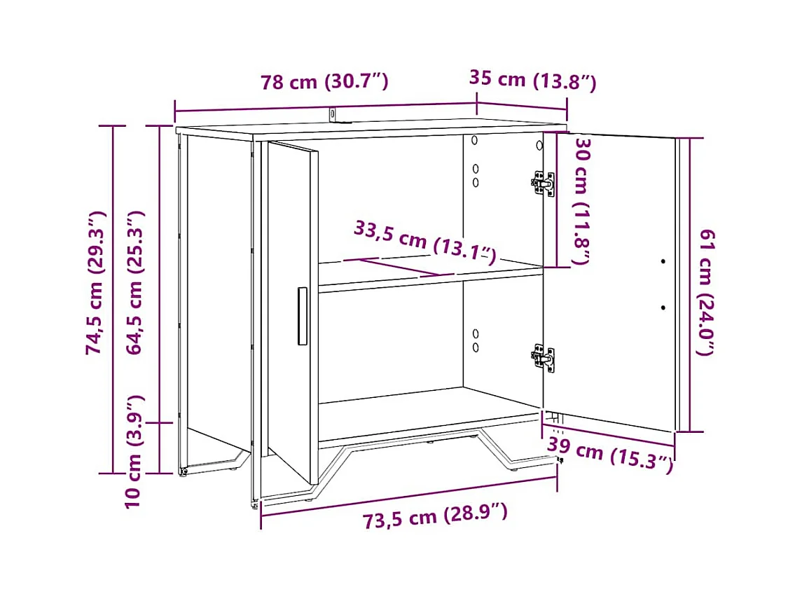 Credenza in rovere realizzata a mano 78 x 35,5 x 74,5 cm Legno ingegnerizzato