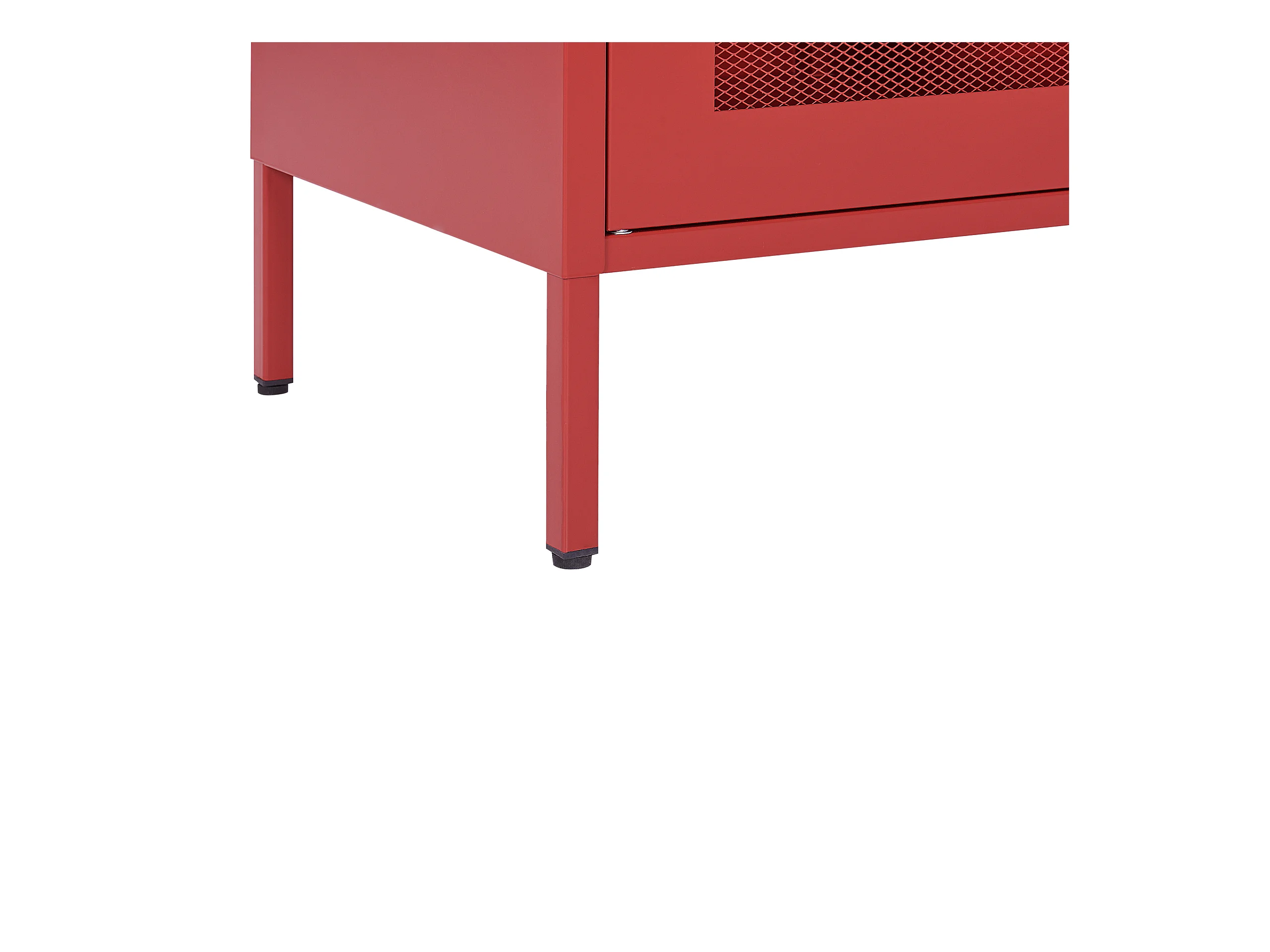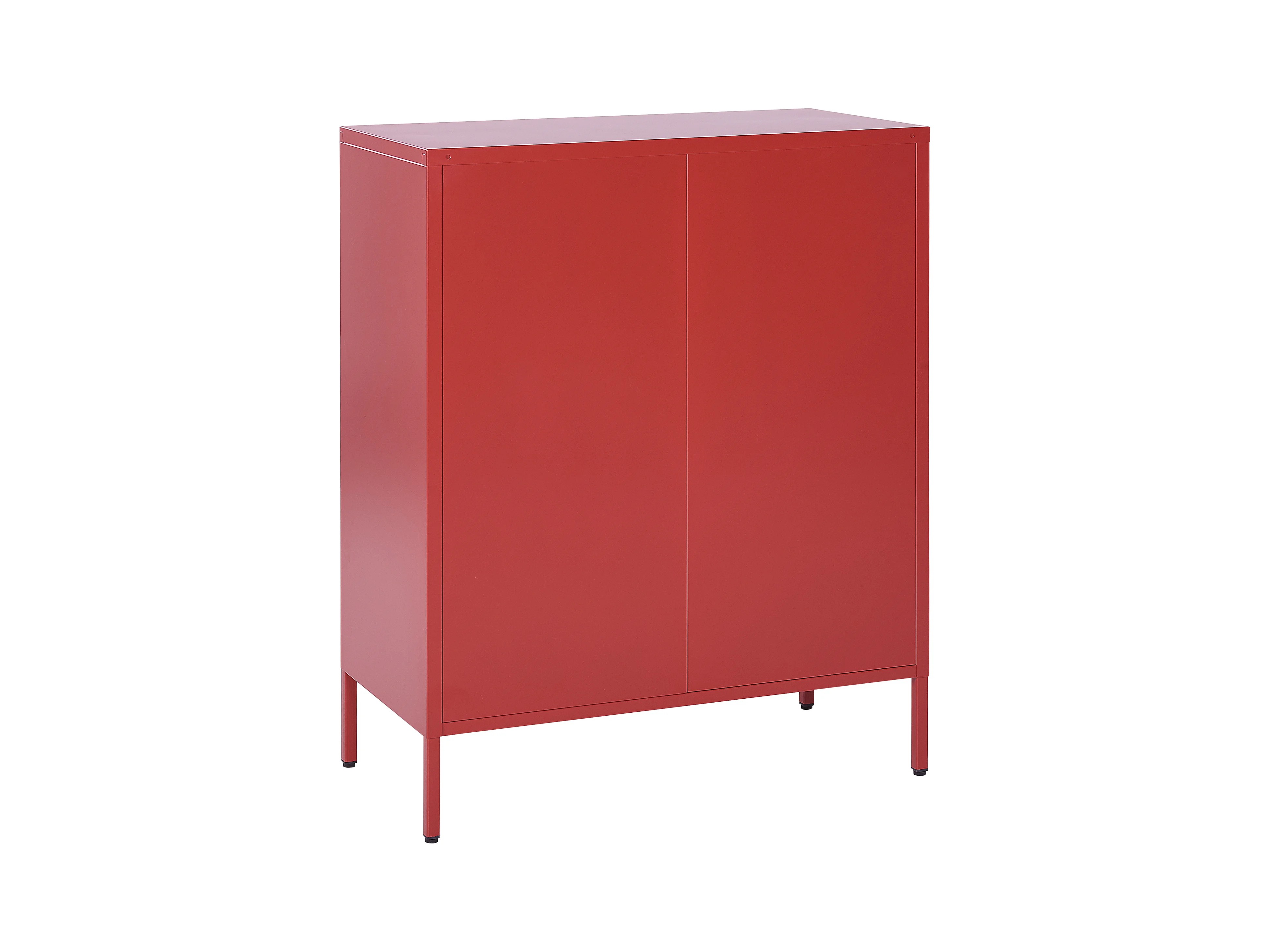 Credenza Skadu, mobile con 2 ante, 3 cassetti e 1 scomparto a giorno, bianco opaco/bordeaux lucido (138,5 x 71,5 x 35 cm)