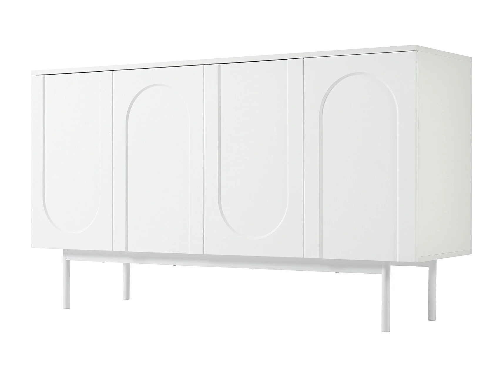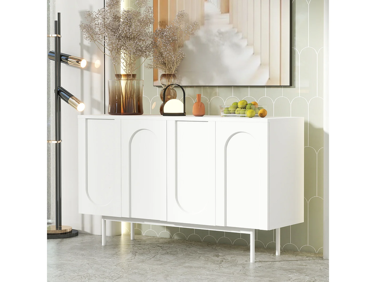 Credenza con 4 ante curve - Bianca - Ideale per sala da pranzo e soggiorno - Spazio di archiviazione