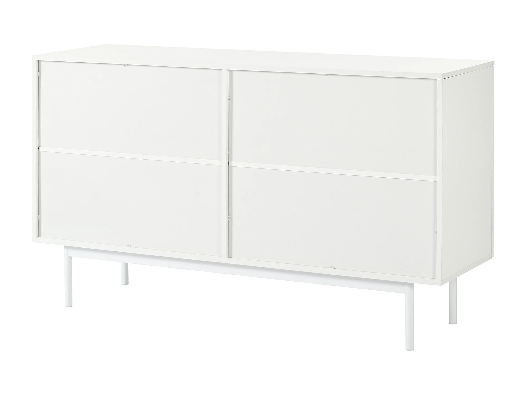 Credenza minimalista 140 x 42 x 80 cm, con 4 ante, per sala da pranzo e soggiorno, bianca