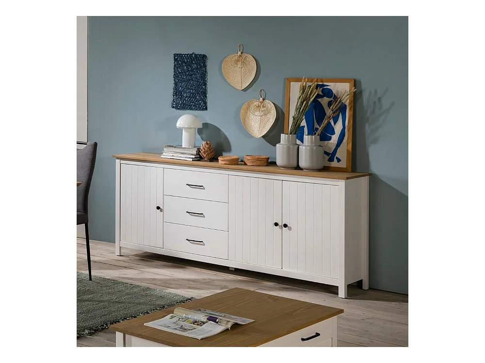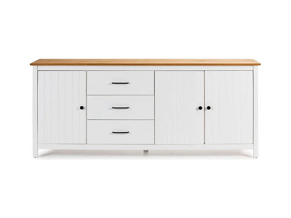 Credenza Miranda in legno massiccio colore bianco e pino 191x40x80H - 3 Ante e 3 cassetti