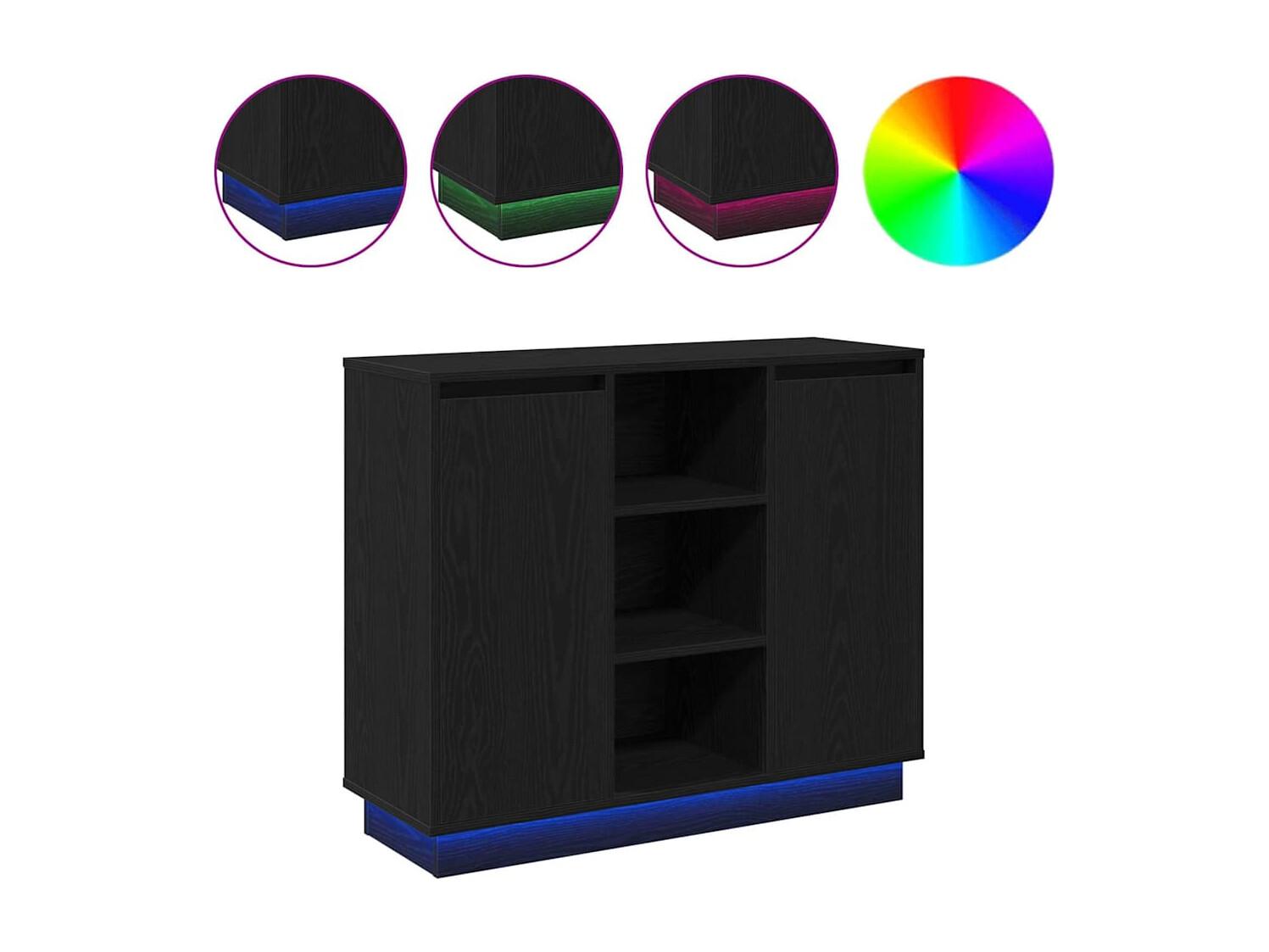 Credenza | Mobile | Armadio TV con LED Rovere Nera 90x32x75 cm Legno ingegnerizzato