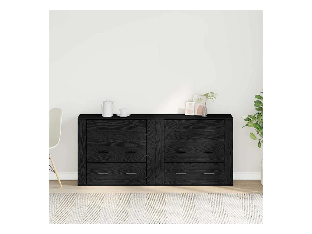 Credenze 2 pezzi in legno ingegnerizzato di rovere nero