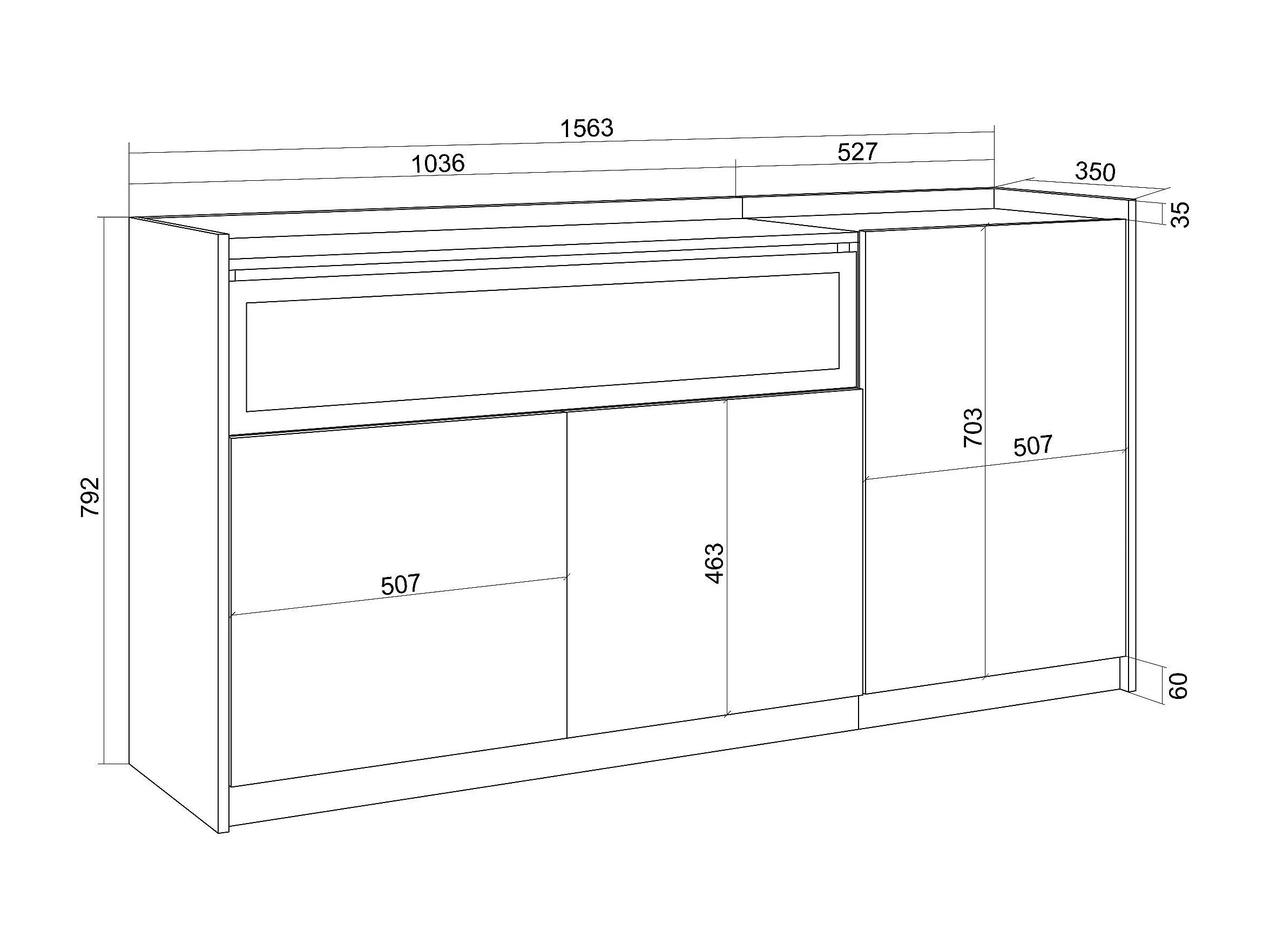 Credenza, Mobile, Cucina, 156x80x37 cm, 3 Porte, Camino elettrico, LED, Rovere e nero