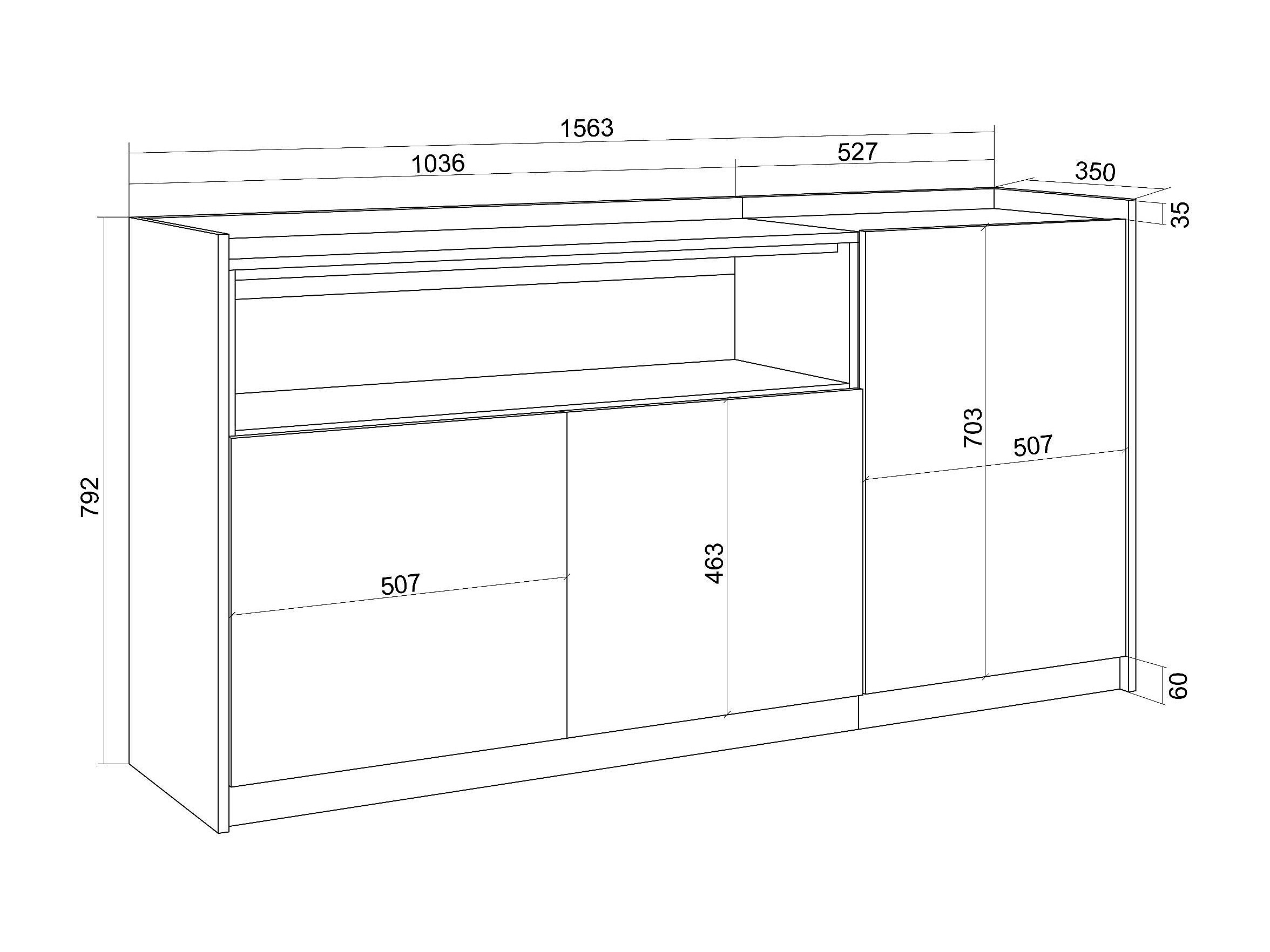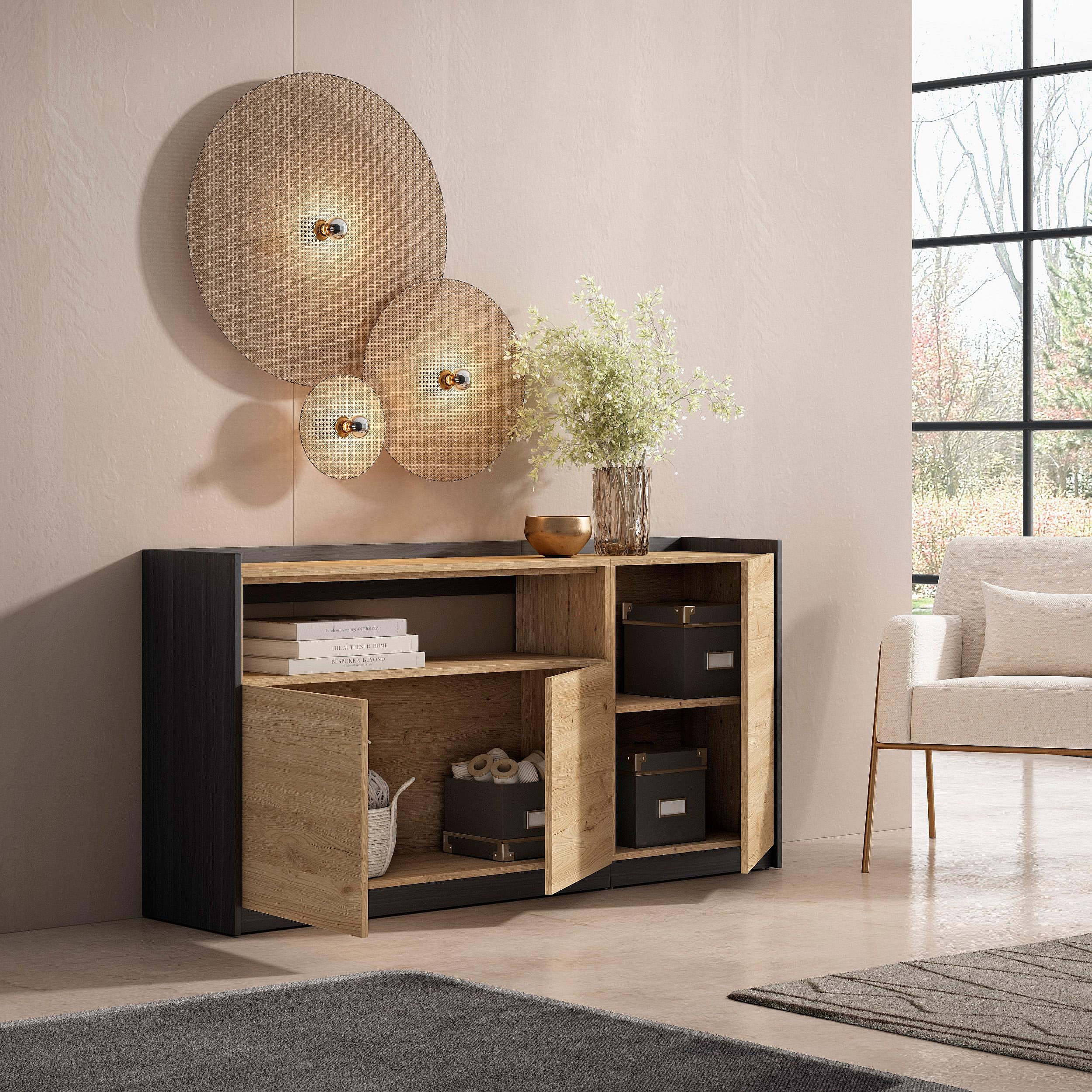Credenza, Mobile, Cucina, 156x80x37 cm, 3 Porte, grande stoccaggio, Rovere e nero
