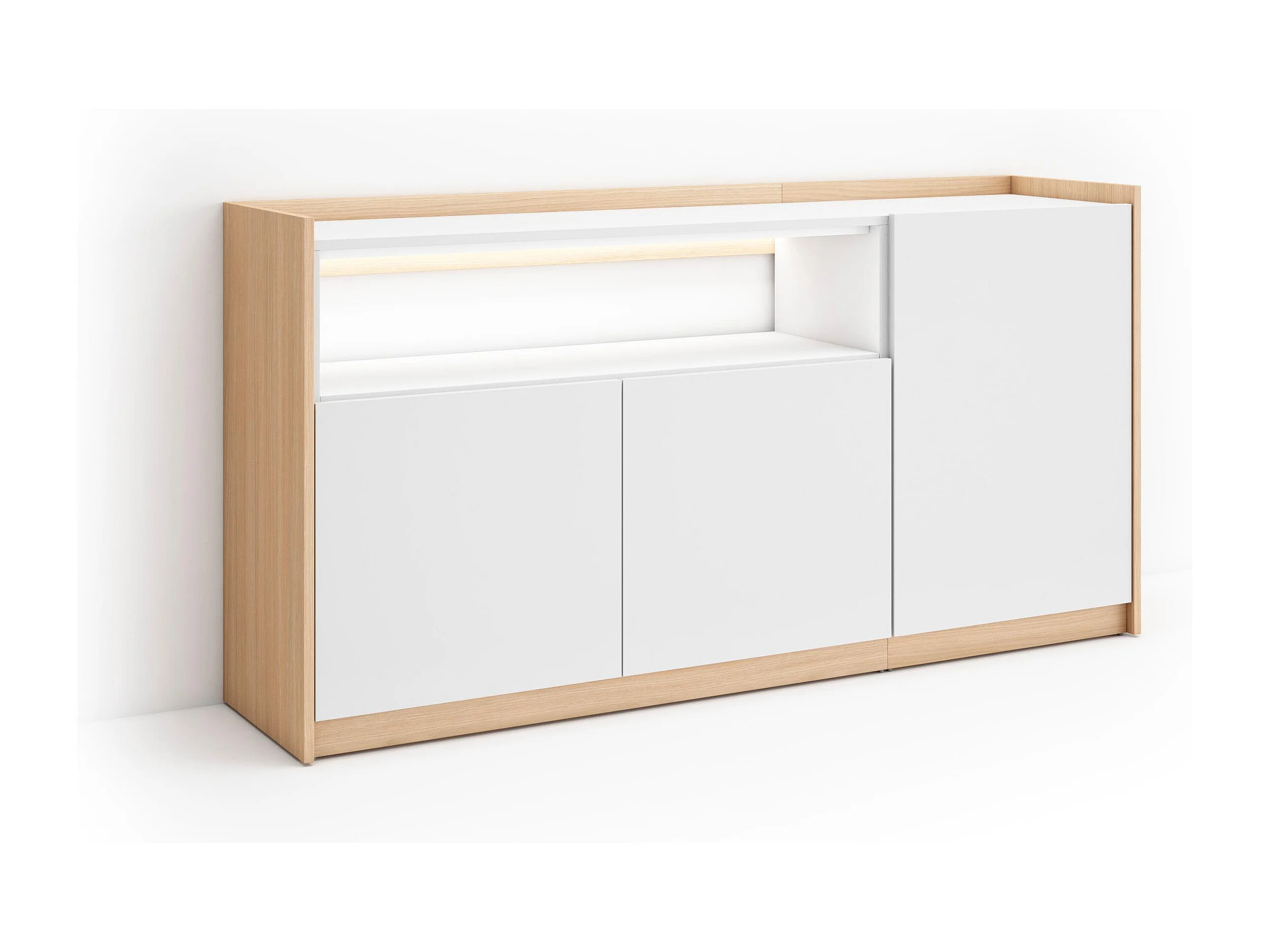 Credenza, Mobile, Cucina, 156x80x37 cm, 3 Porte, LED, Bianco e Rovere soft