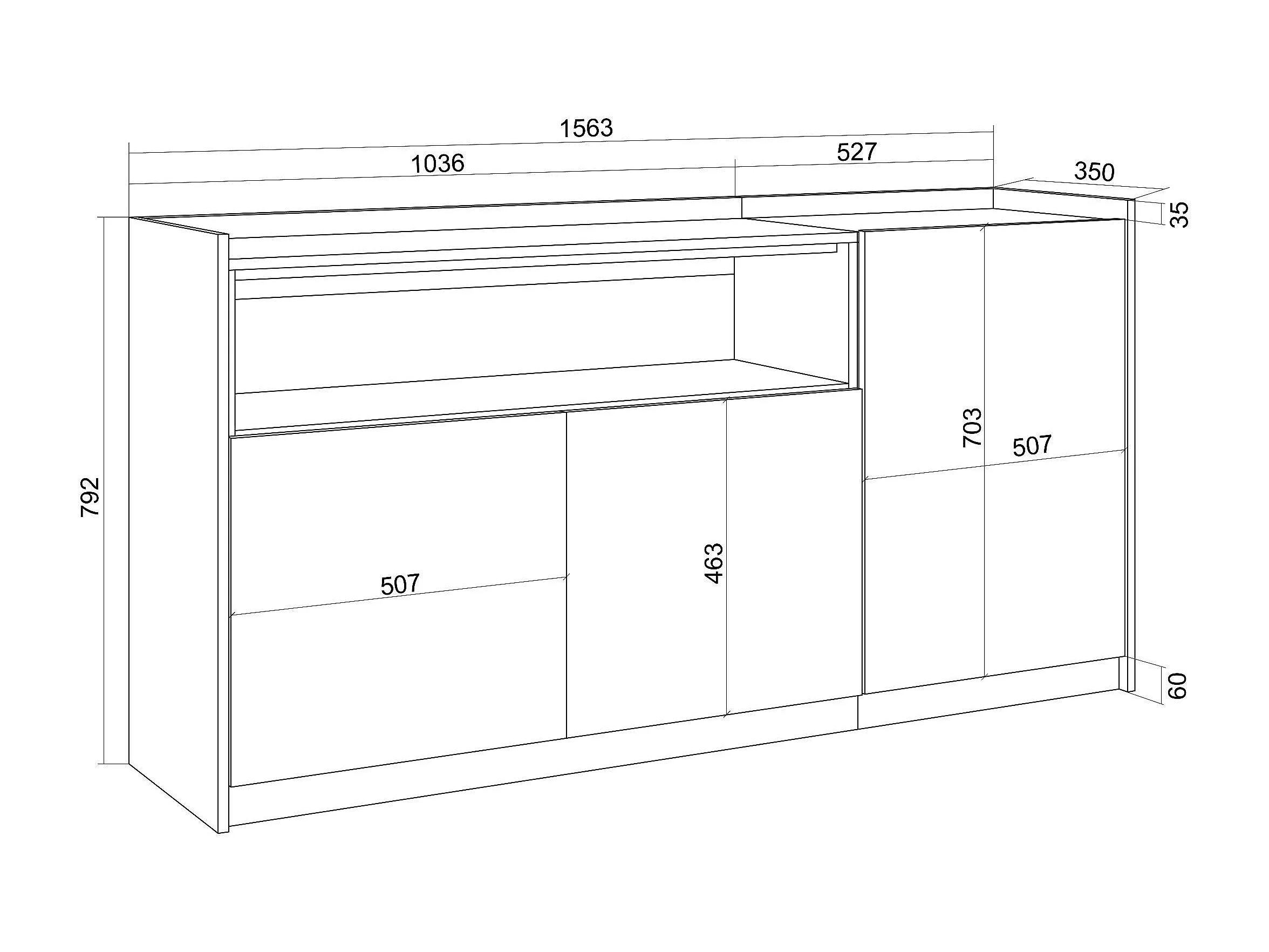 Credenza, Mobile, Cucina, 156x80x37 cm, 3 Porte, LED, Nero e rovere