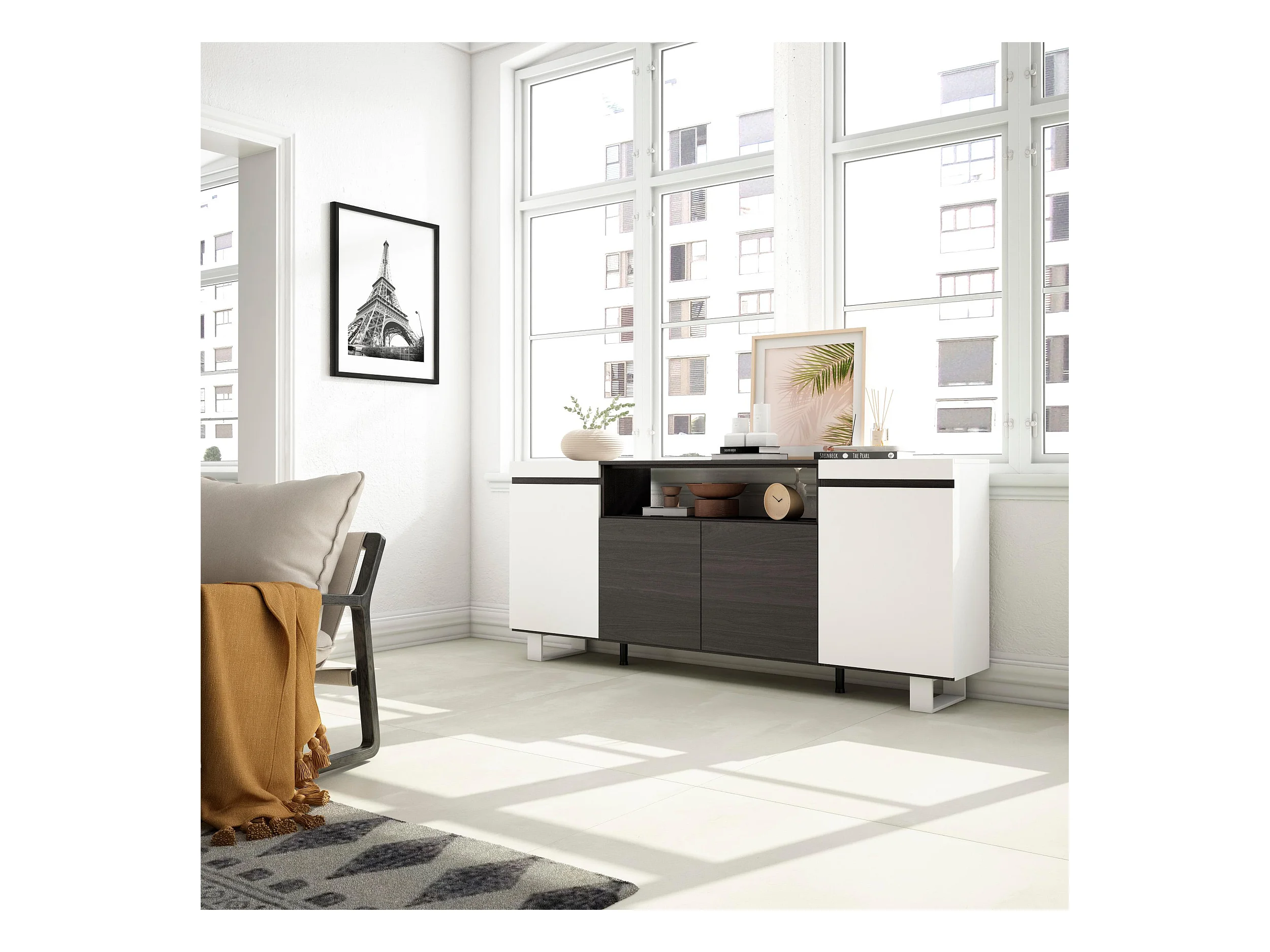 Credenza, Mobile, Cucina, 200x35x75cm, 4 Porte, grande stoccaggio, Bianco e nero