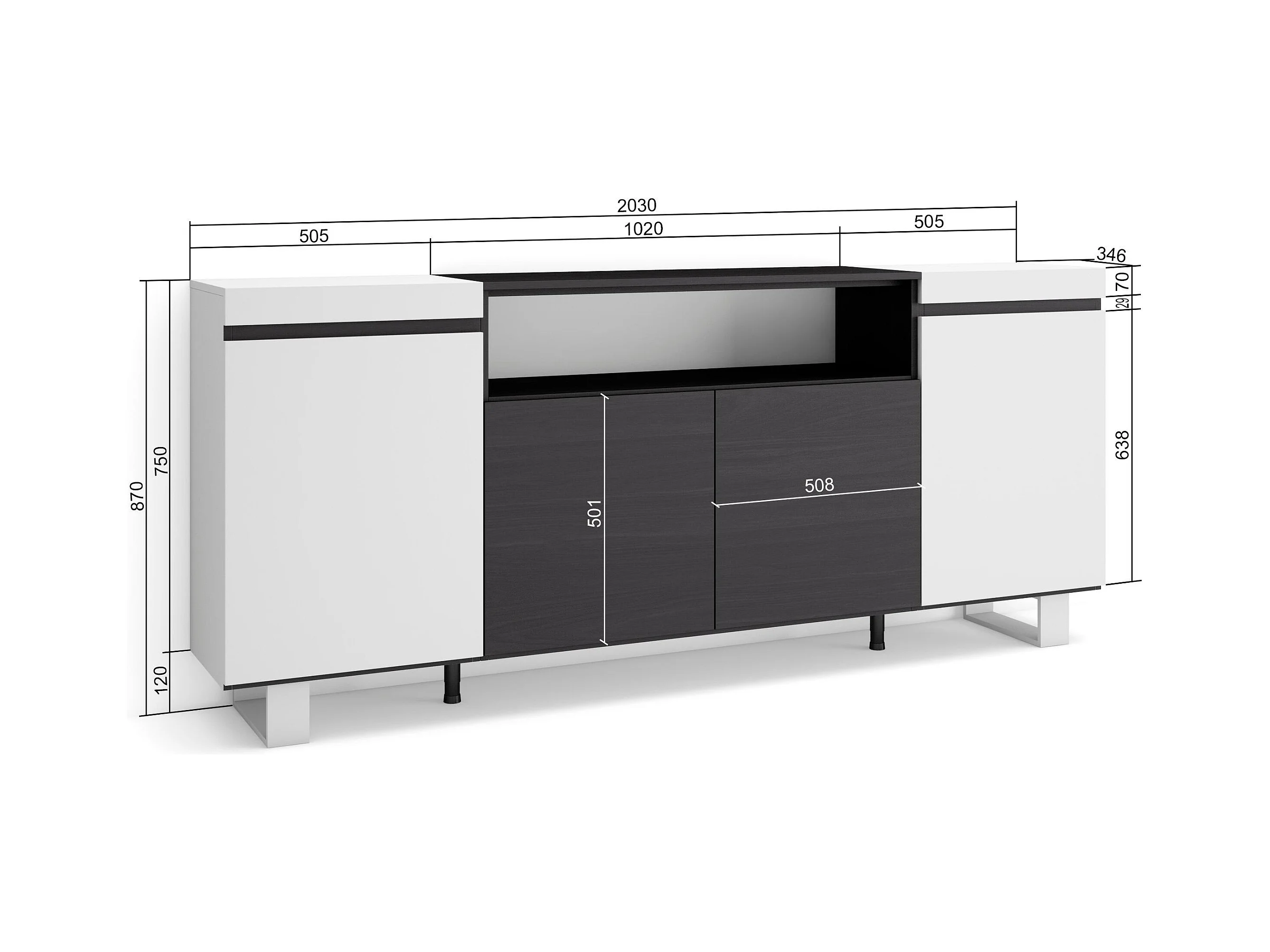 Credenza, Mobile, Cucina, 200x35x87cm, 4 Porte, Design industriale, Bianco e nero