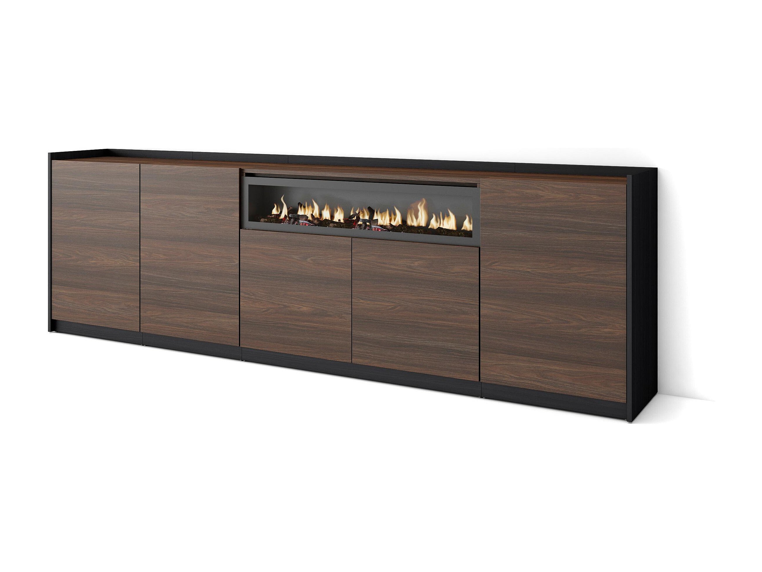 Credenza, Mobile, Cucina, 260x80x37 cm, 5 Porte, Camino elettrico, Rovere scuro e Nero