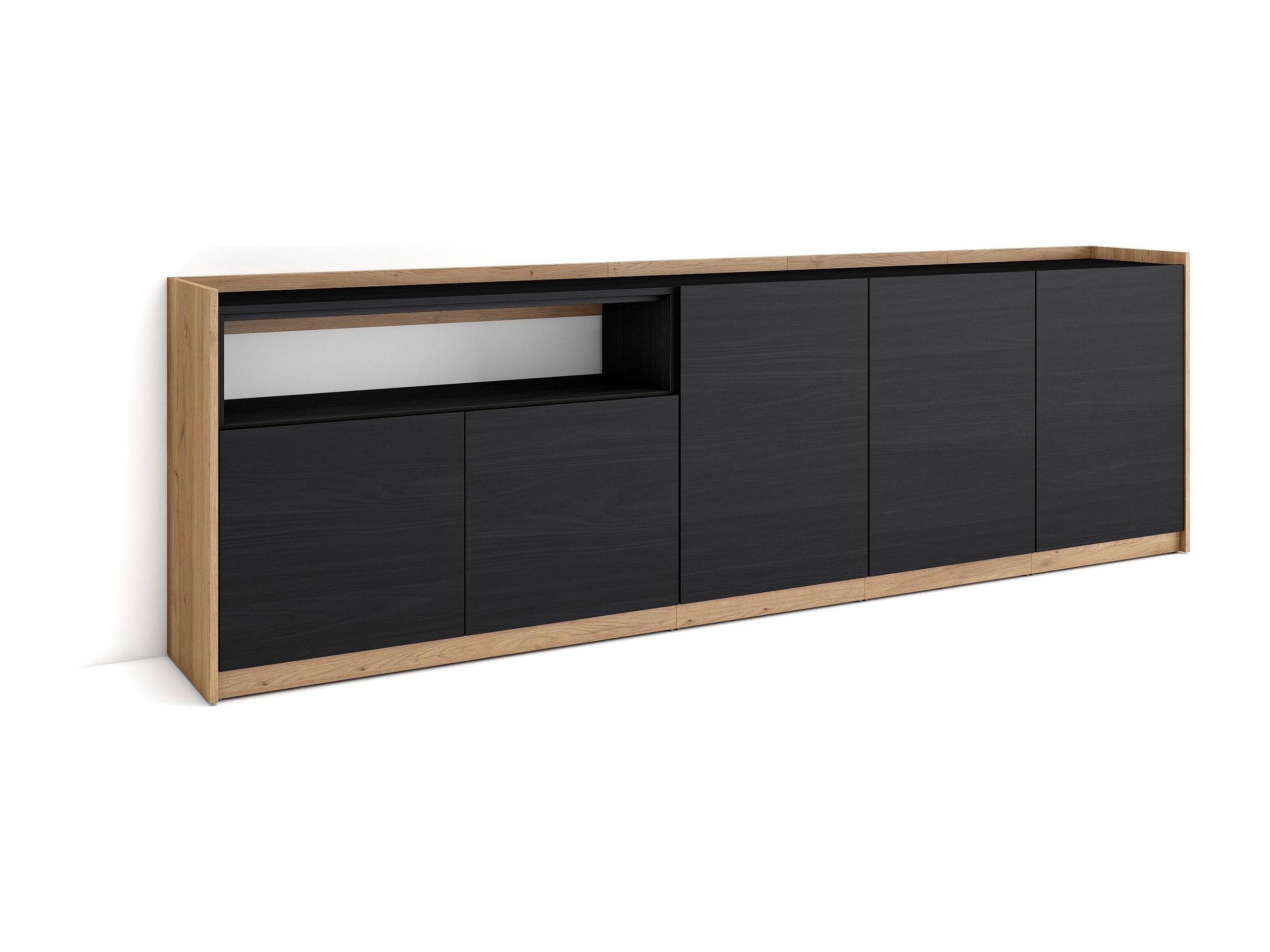 Credenza, Mobile, Cucina, 260x80x37 cm, 5 Porte, grande stoccaggio, Nero e rovere