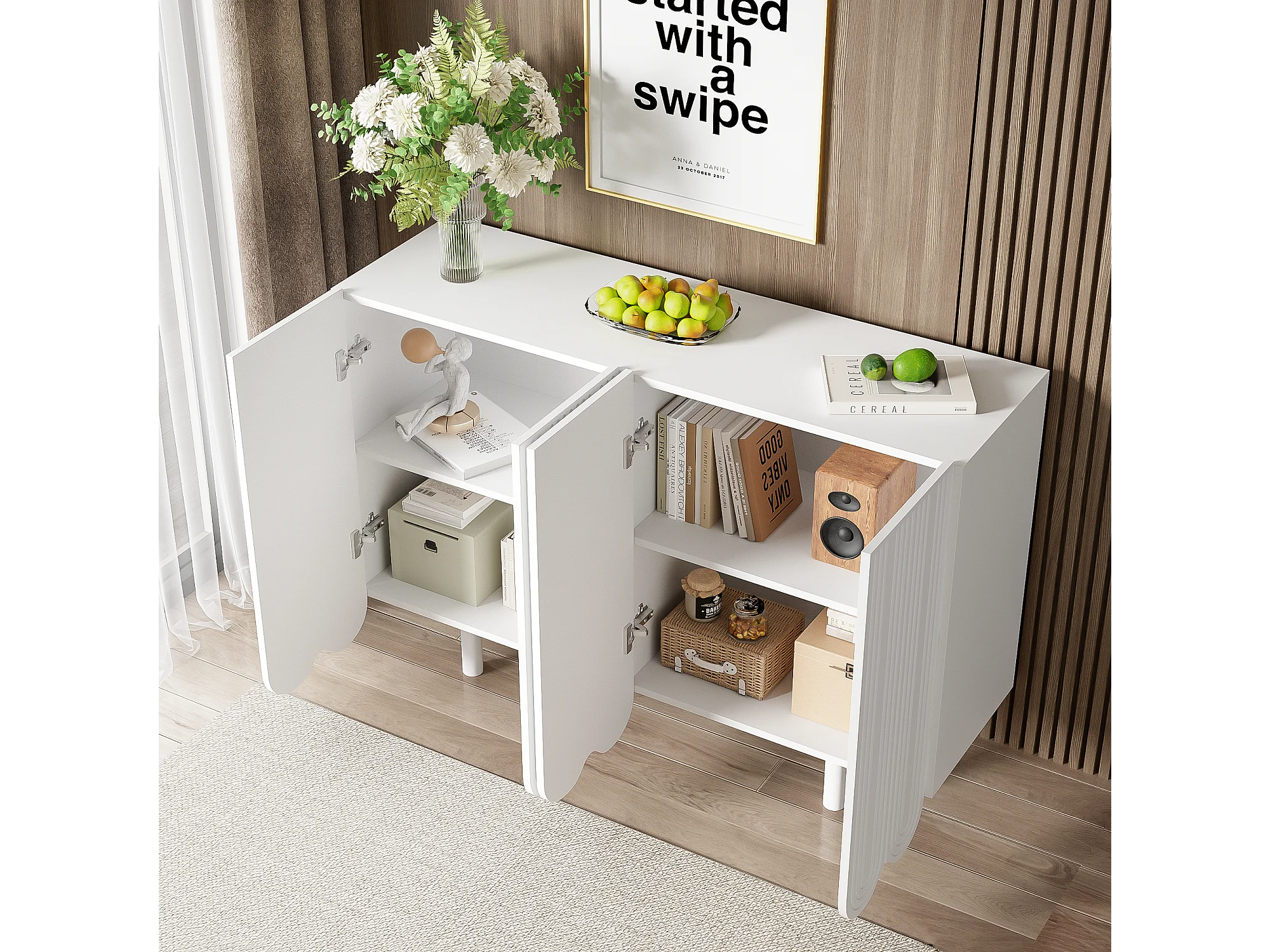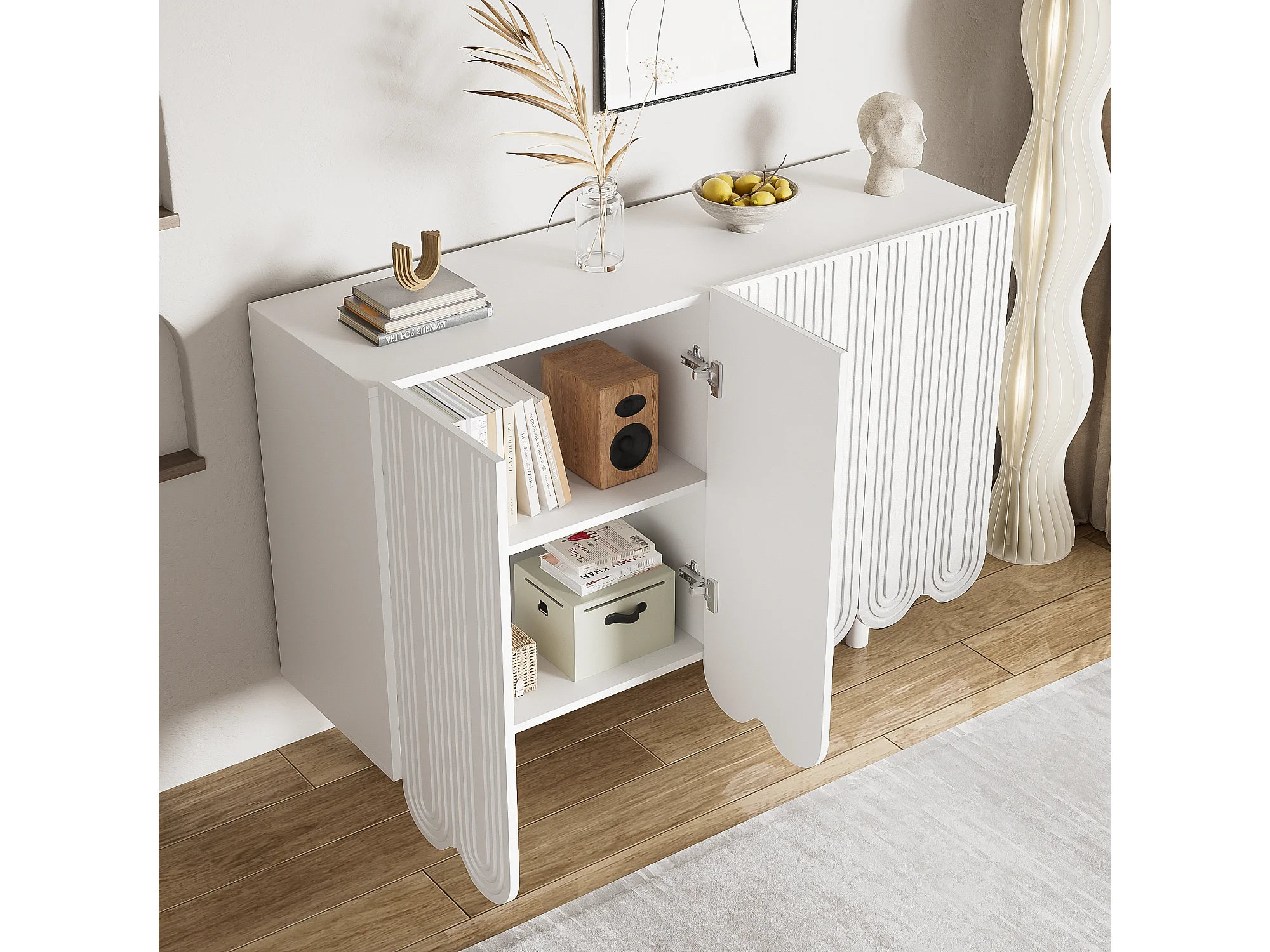 Credenza moderna - 4 ante con motivo a U con ripiani - Nera
