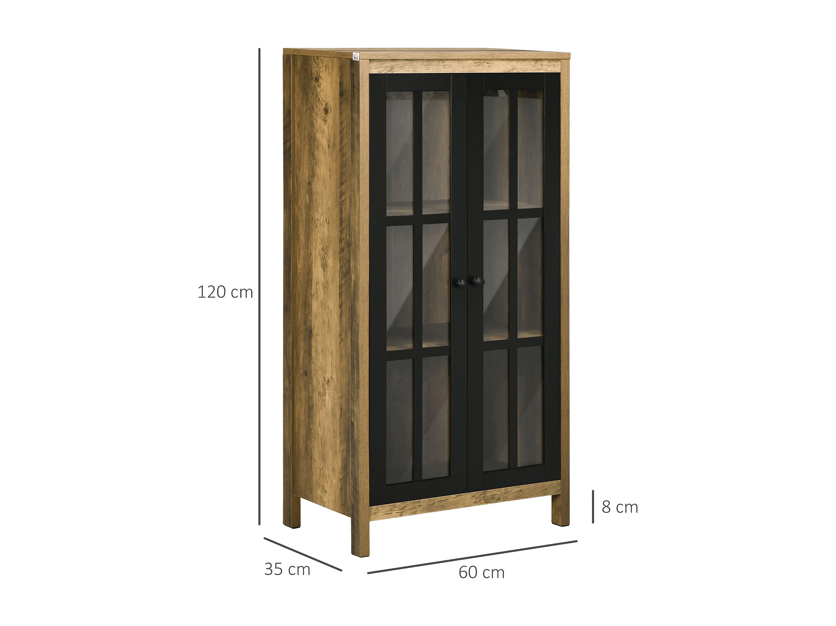 Credenza moderna a 2 ante in vetro e legno 60x35x120cm marrone