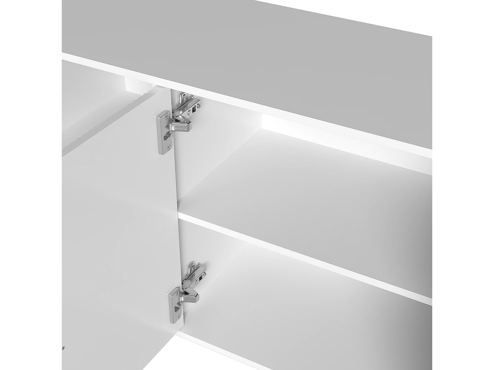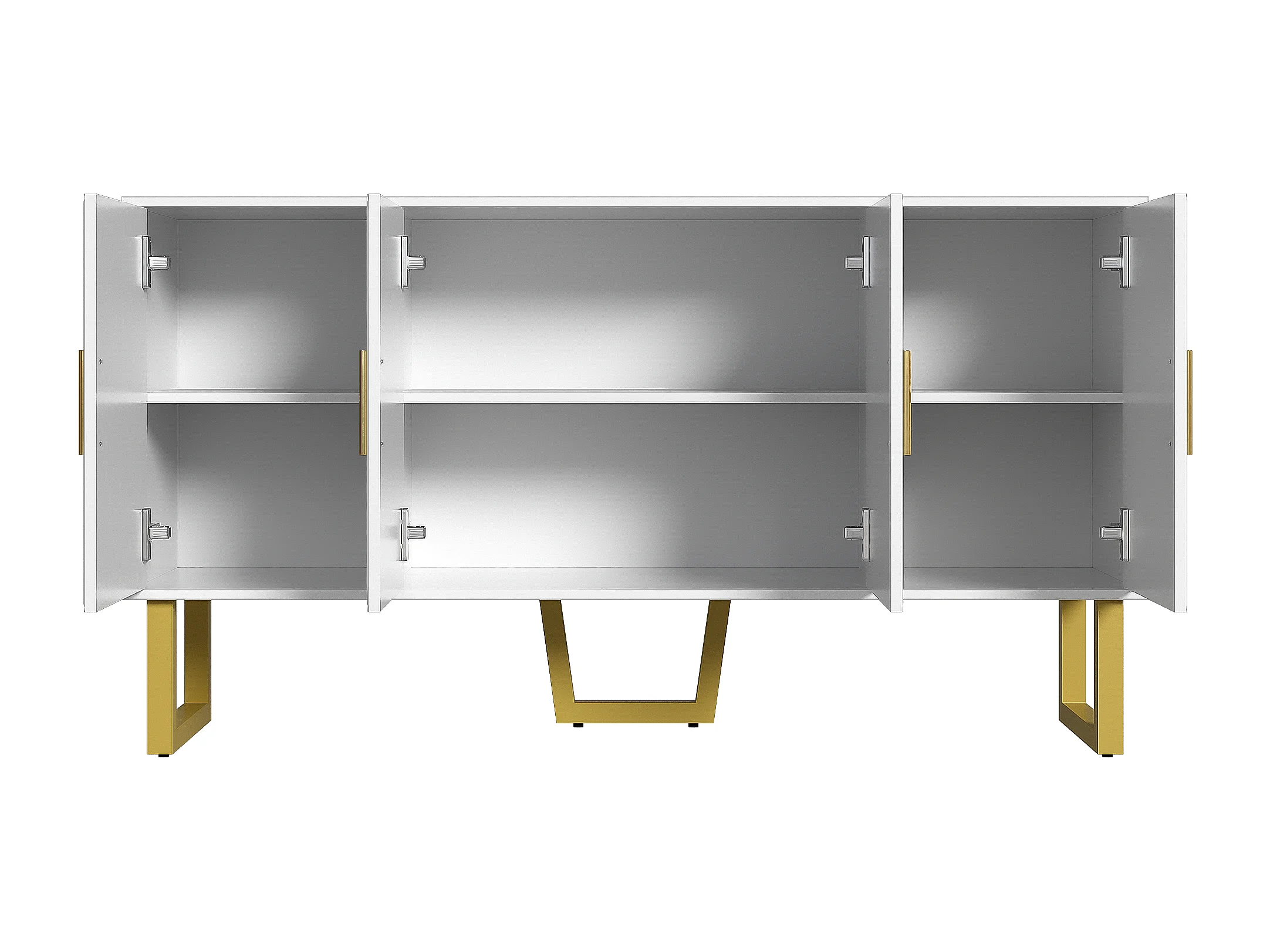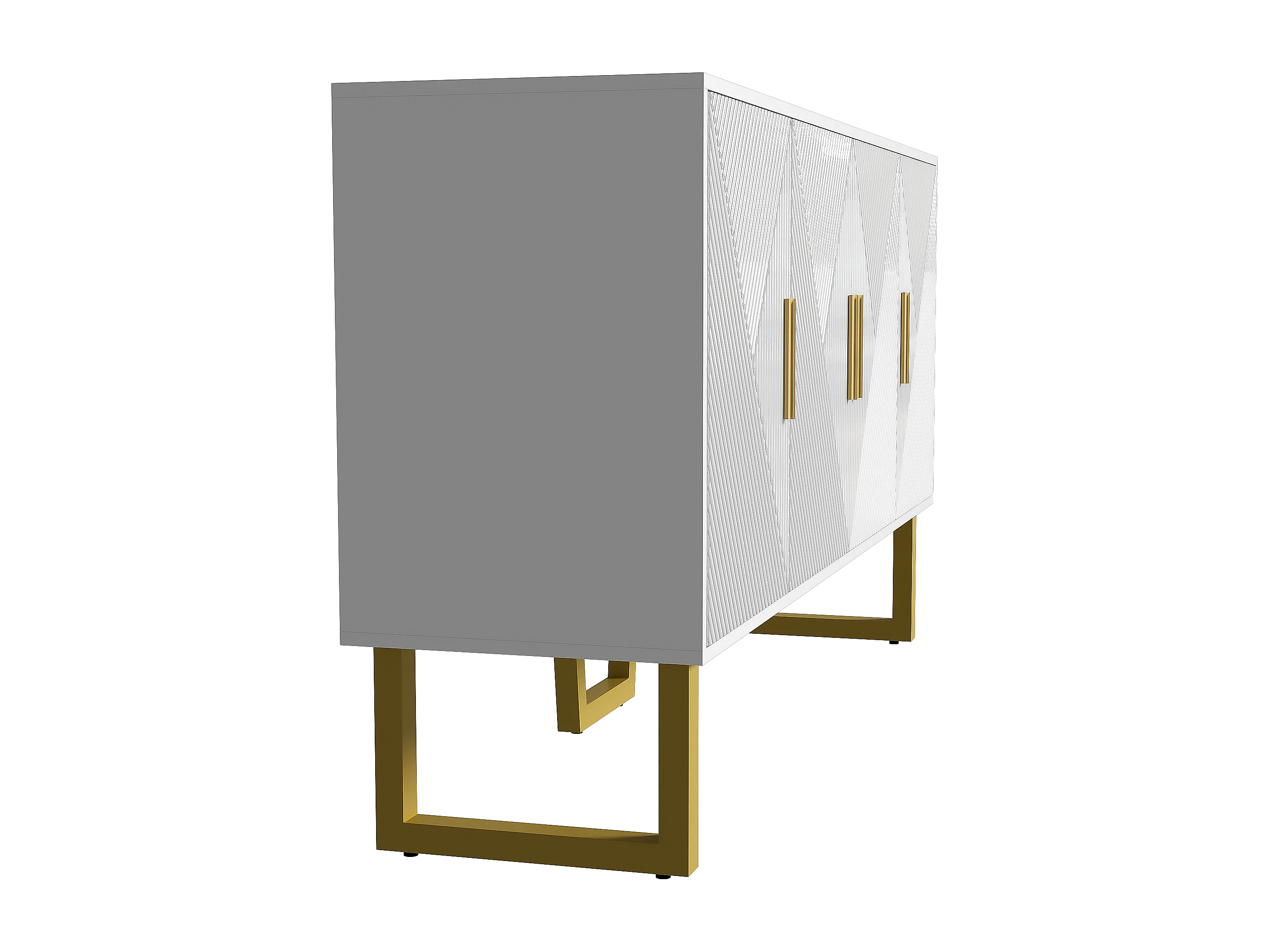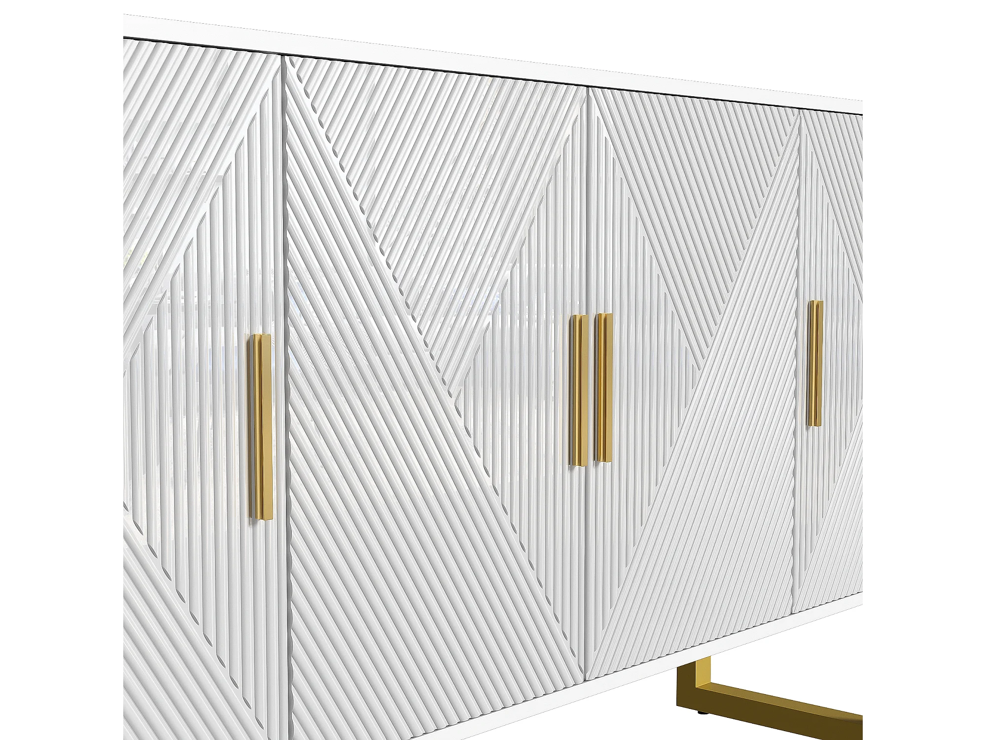Credenza moderna bianca con 4 ante testurizzate, frontale lucido, maniglie dorate