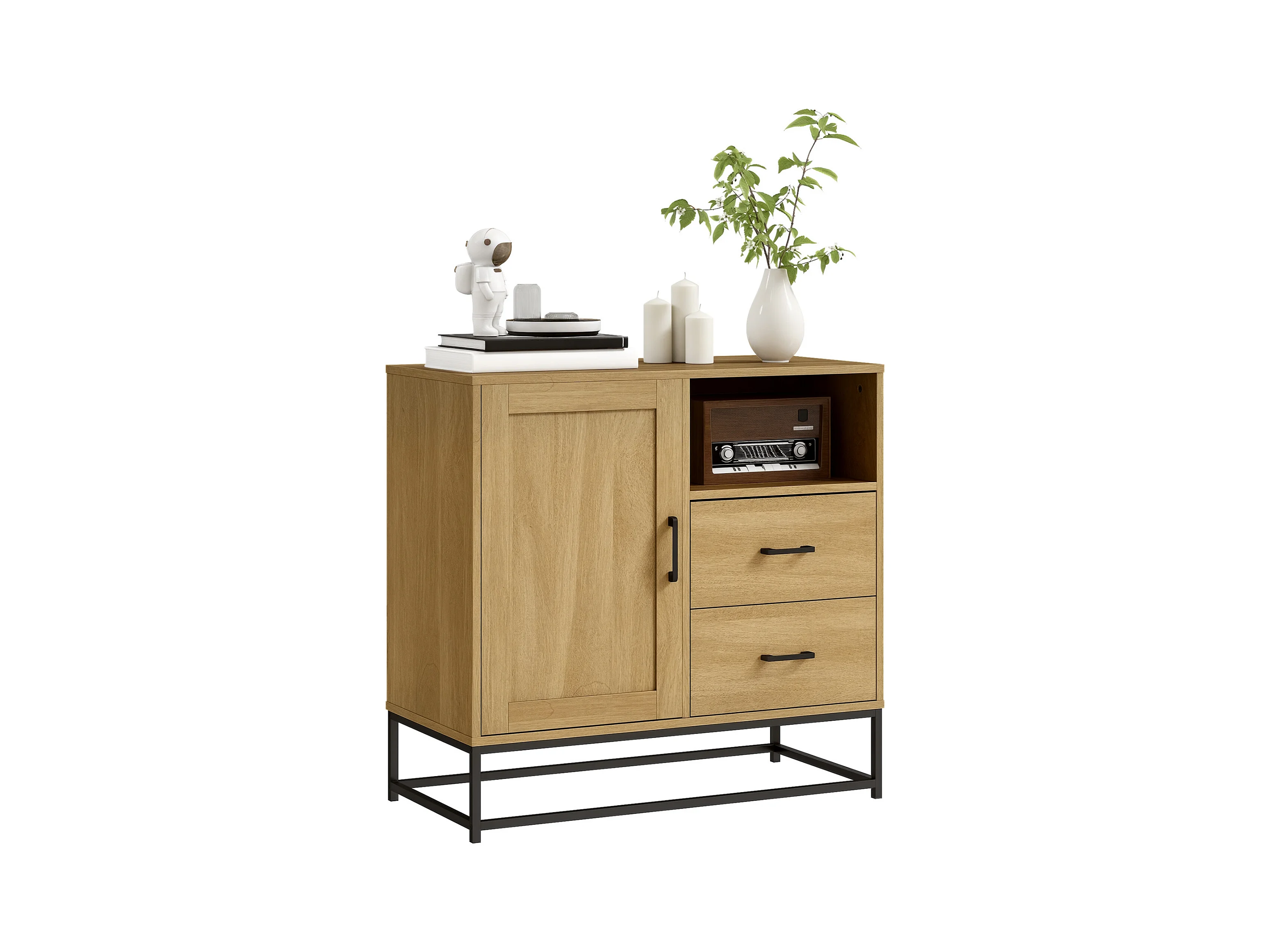Credenza moderna multiuso con 2 armadietti e 3 cassetti