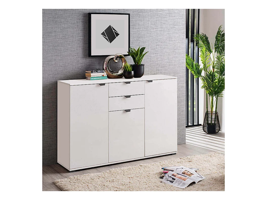 MilaniHome.it - madia moderna con tre cassetti e un anta di design per salotto, soggiorno 119x39,5x85,6 hdi coloreBianco