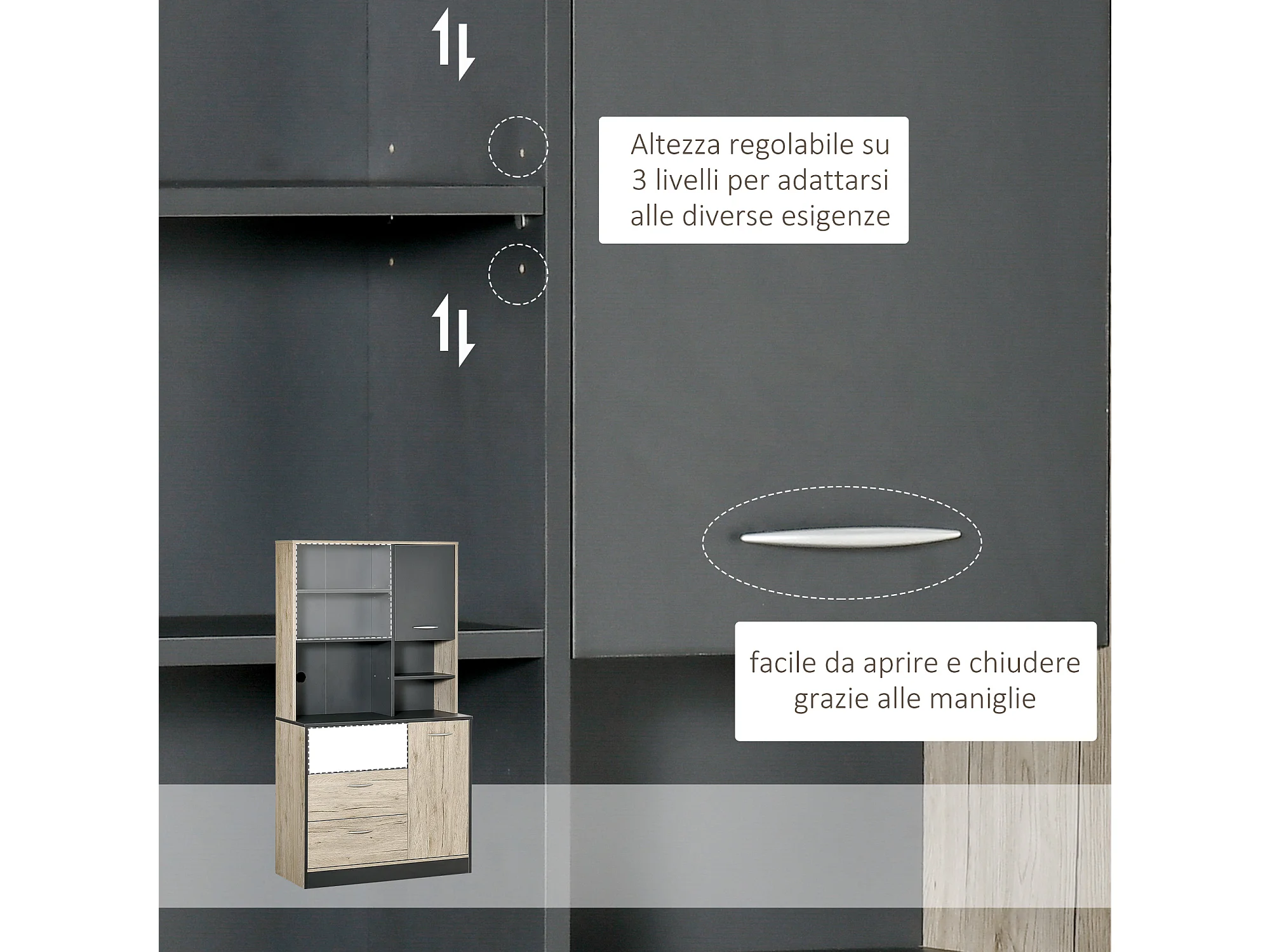 Credenza moderna da cucina con ripiani cassetti e ante 90x39x169 cm