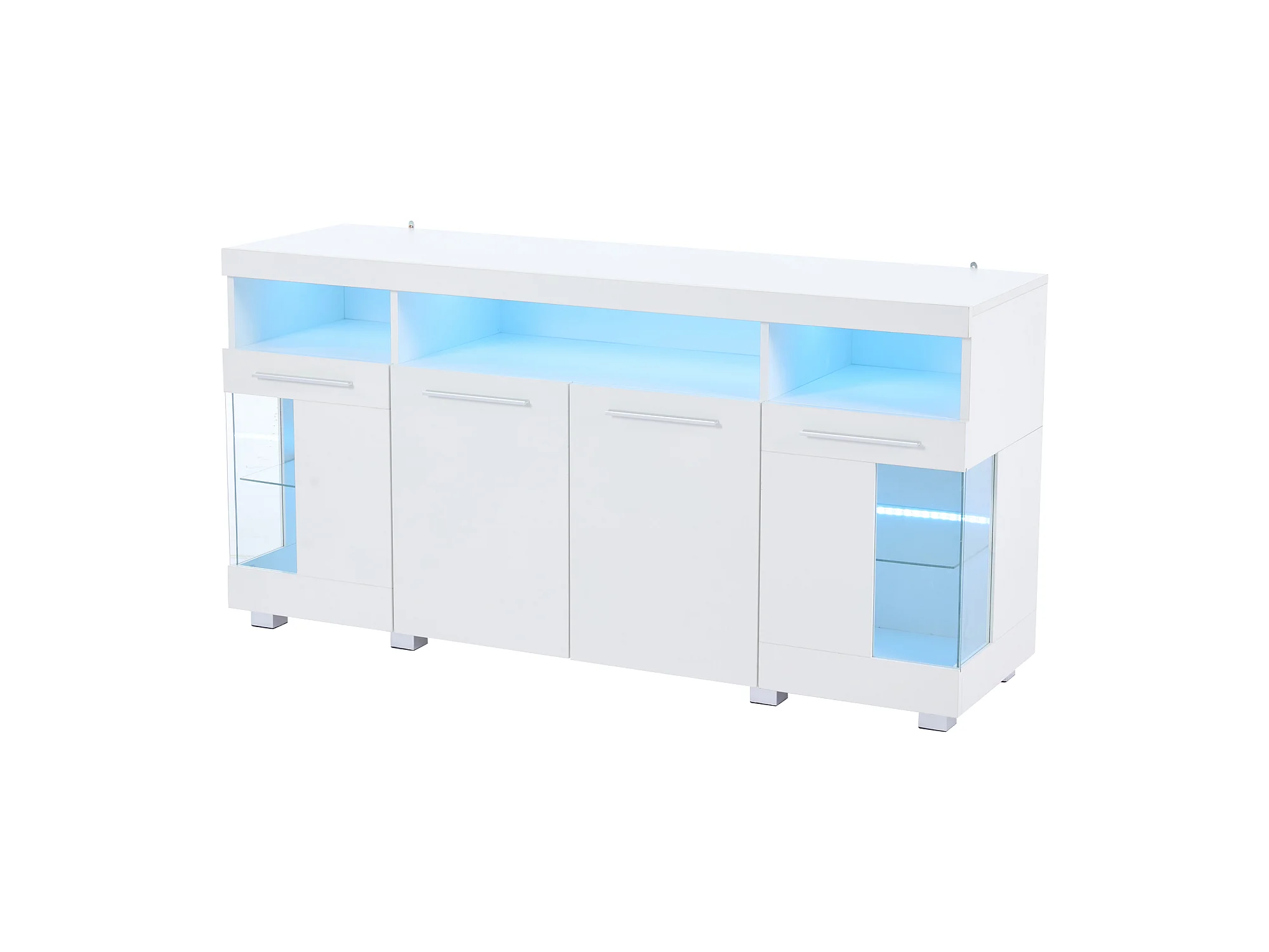 Buffet moderno - con striscia LED luminosa a 16 colori - 3 cassetti - 2 ante - bianco