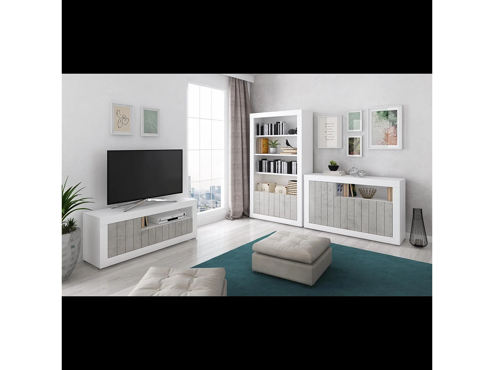Credenza Moderna Madia Con 2 Ante 2 Cassetti Vano A Giorno Mobile Sala Da Pranzo Soggiorno Ingresso Corridoio Senza Maniglie 184 x 86 x 42 Cm Bianco Grigio Cemento