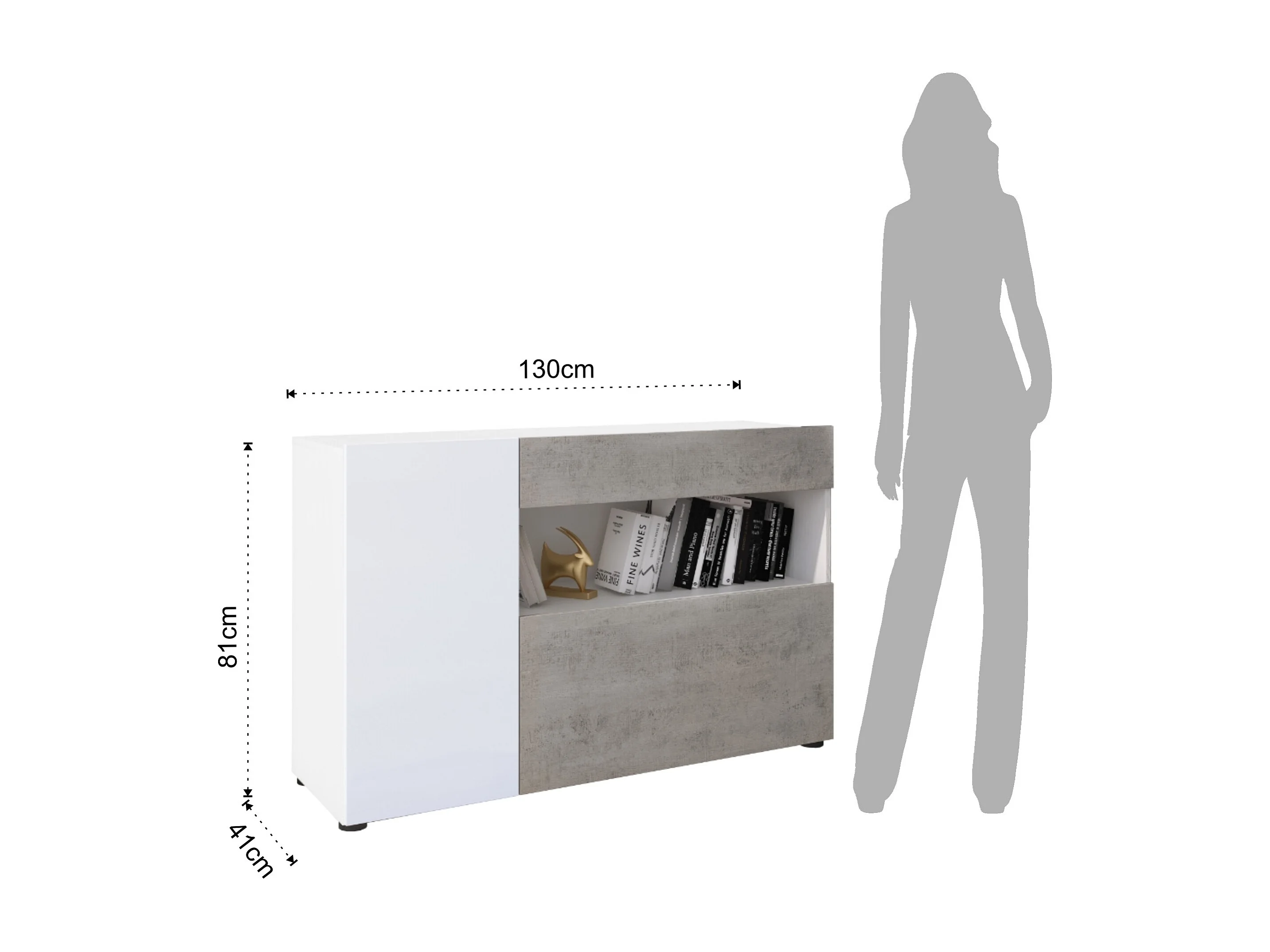 Credenza Moderna Madia Mobile Contenitore In Melaminico Con 2 Ante 1 Cassetto E Ripiani Interni Design Minimal Senza Maniglie 130 x 81 x 41 Cm Bianco Grigio Cemento