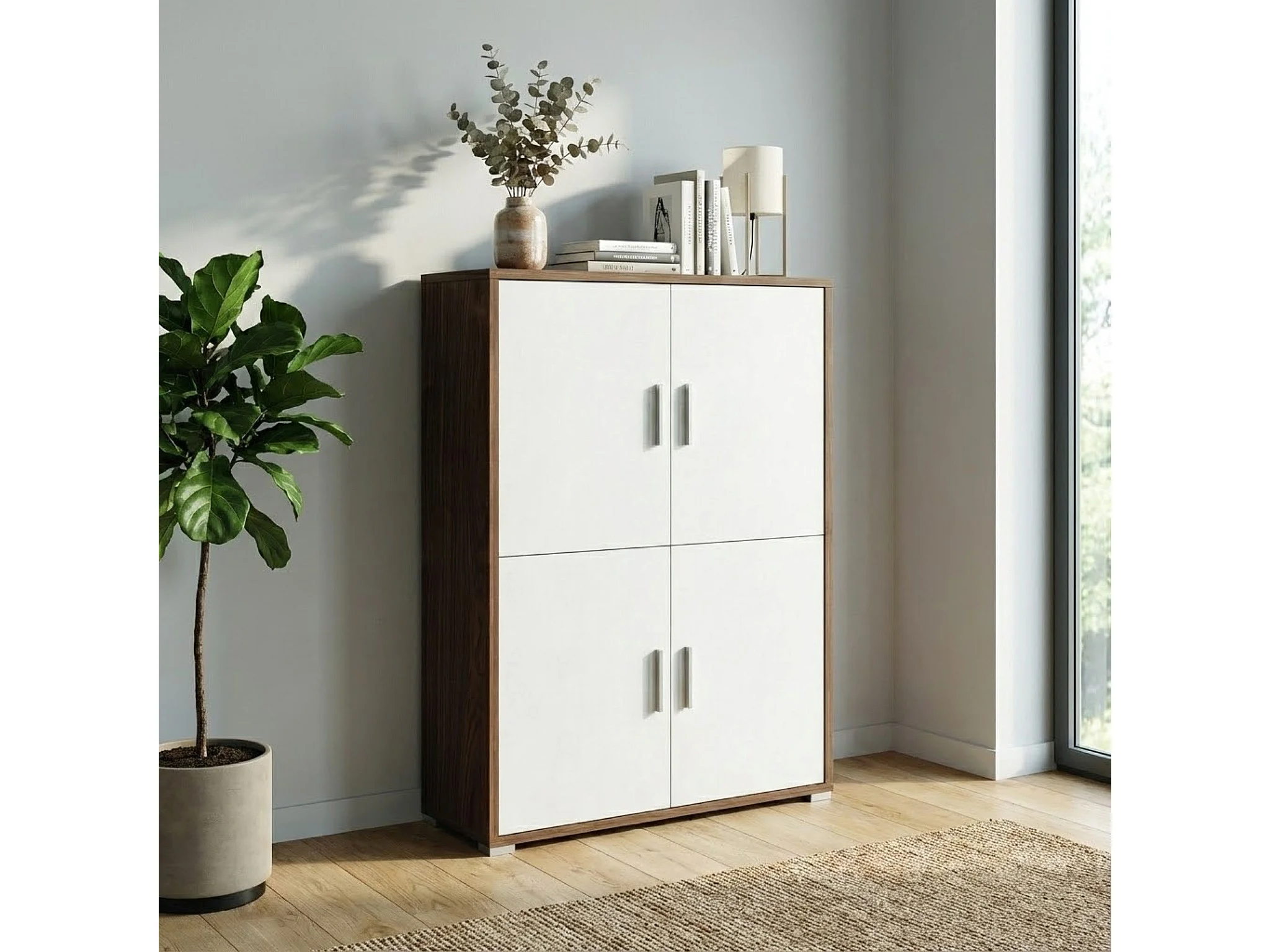 MilaniHome.it - credenza moderna per soggiorno di design moderno cm 107 l x 41 p x 162 hdi coloreBianco