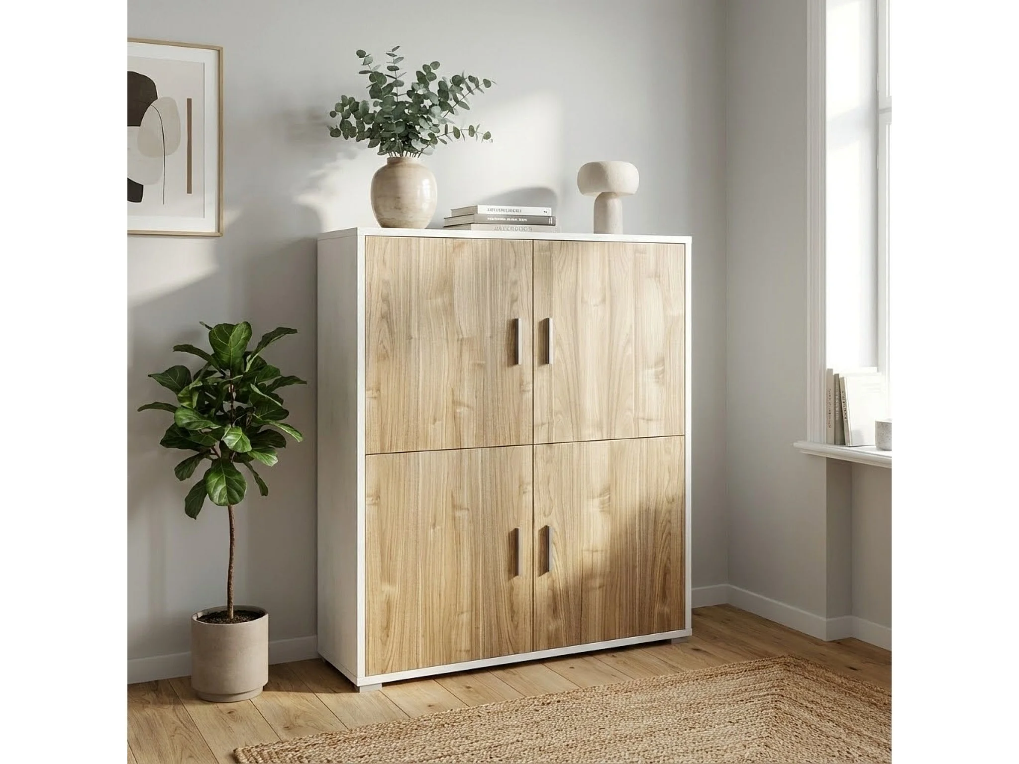 MilaniHome.it - madia moderna con 2 cassetti e tre ante di design moderno contemporaneo cm 106 x 36 x 83 hdi coloreQuercia Chiaro