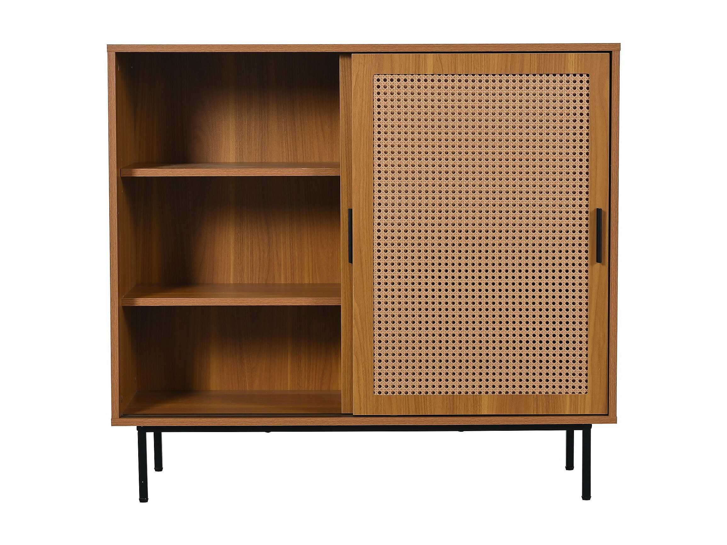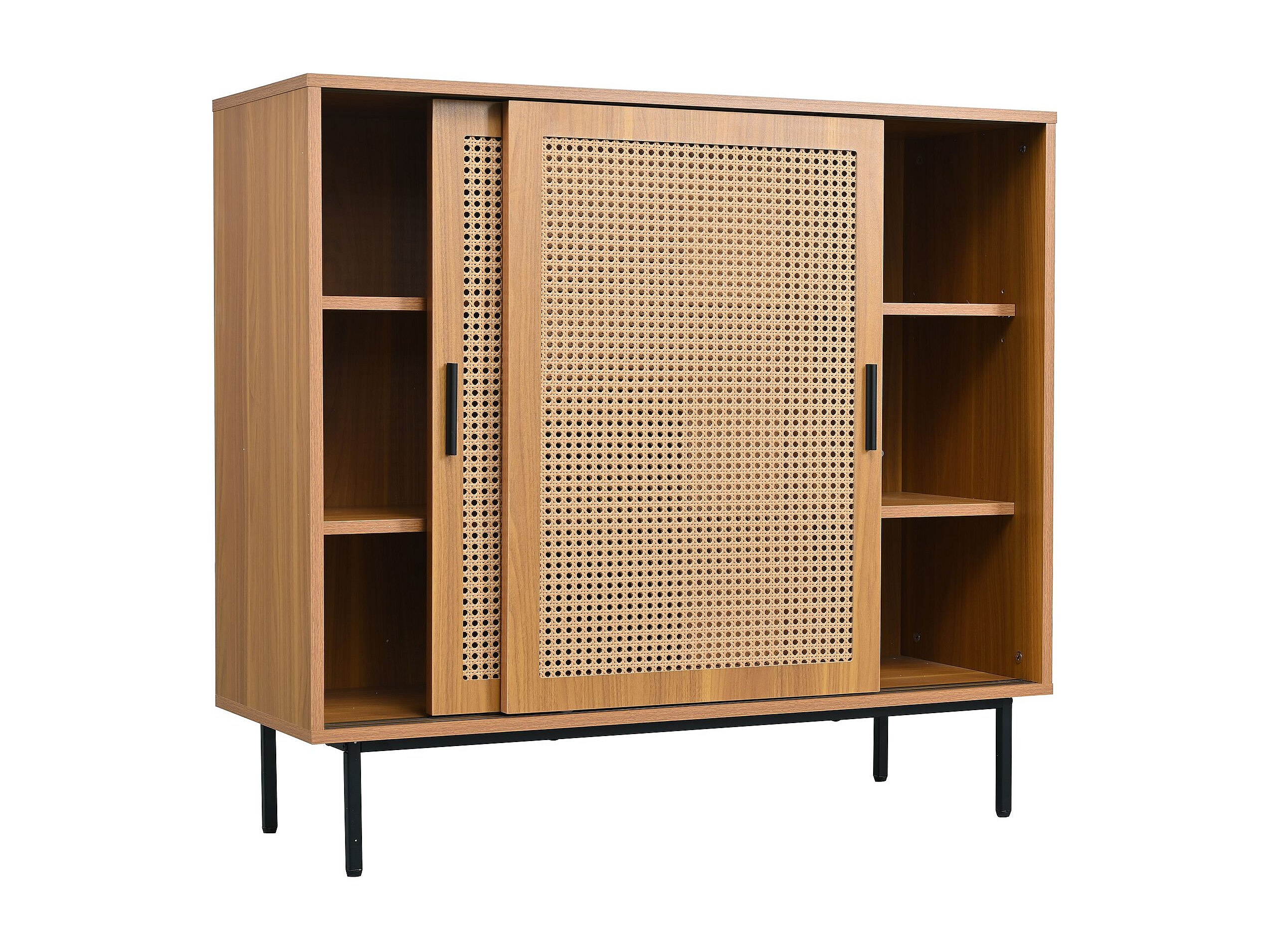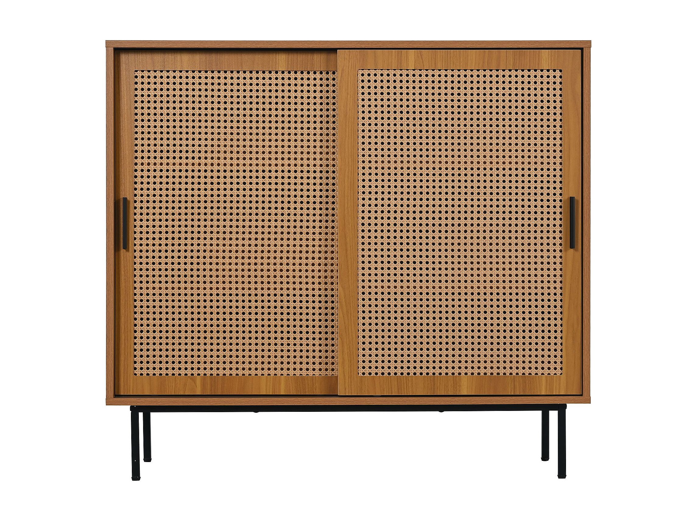 Credenza naturale con 2 ante in rattan e ripiani regolabili - maniglie e gambe nere