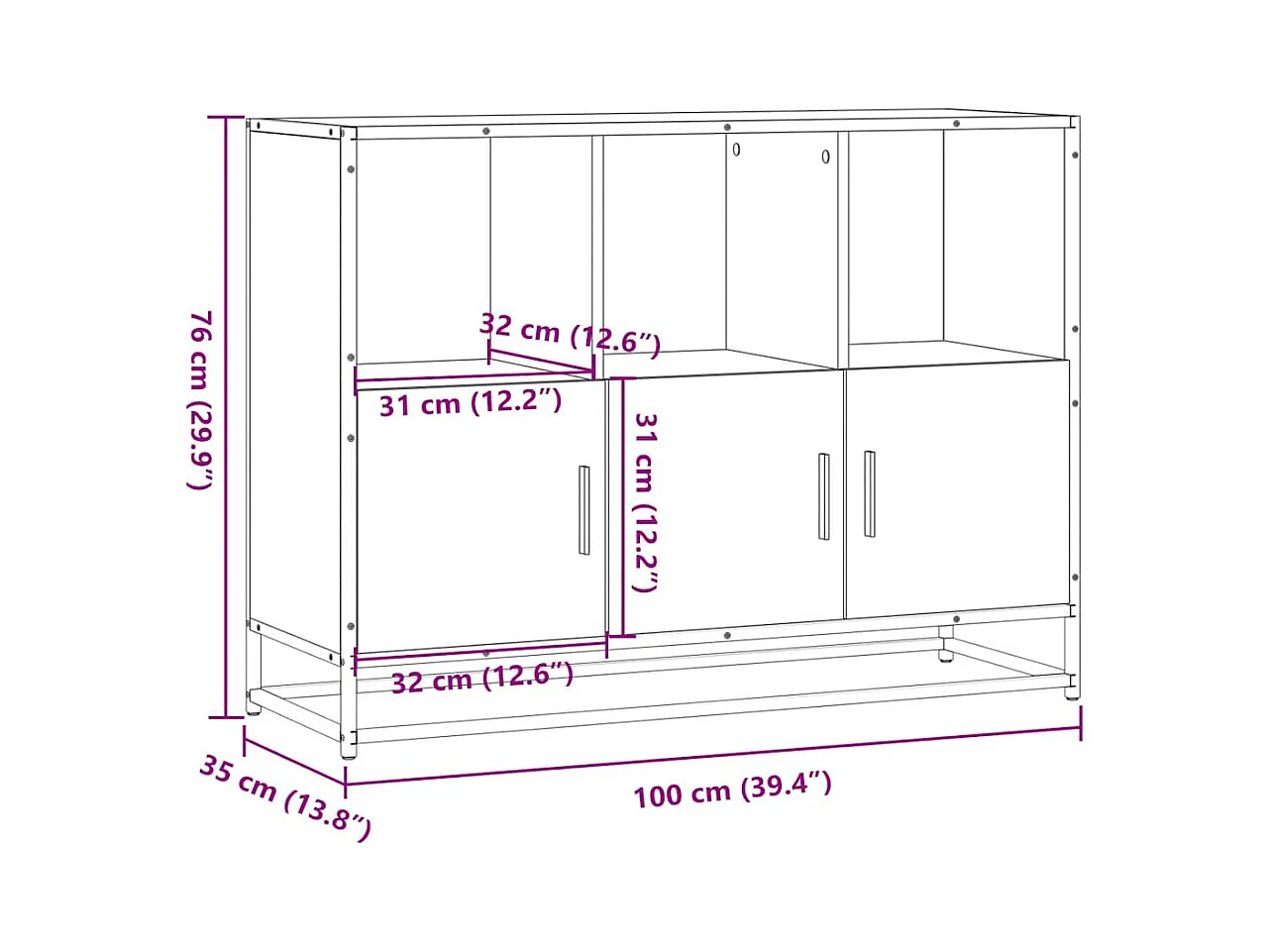Credenza Nera 100x35x76 cm in Legno Multistrato