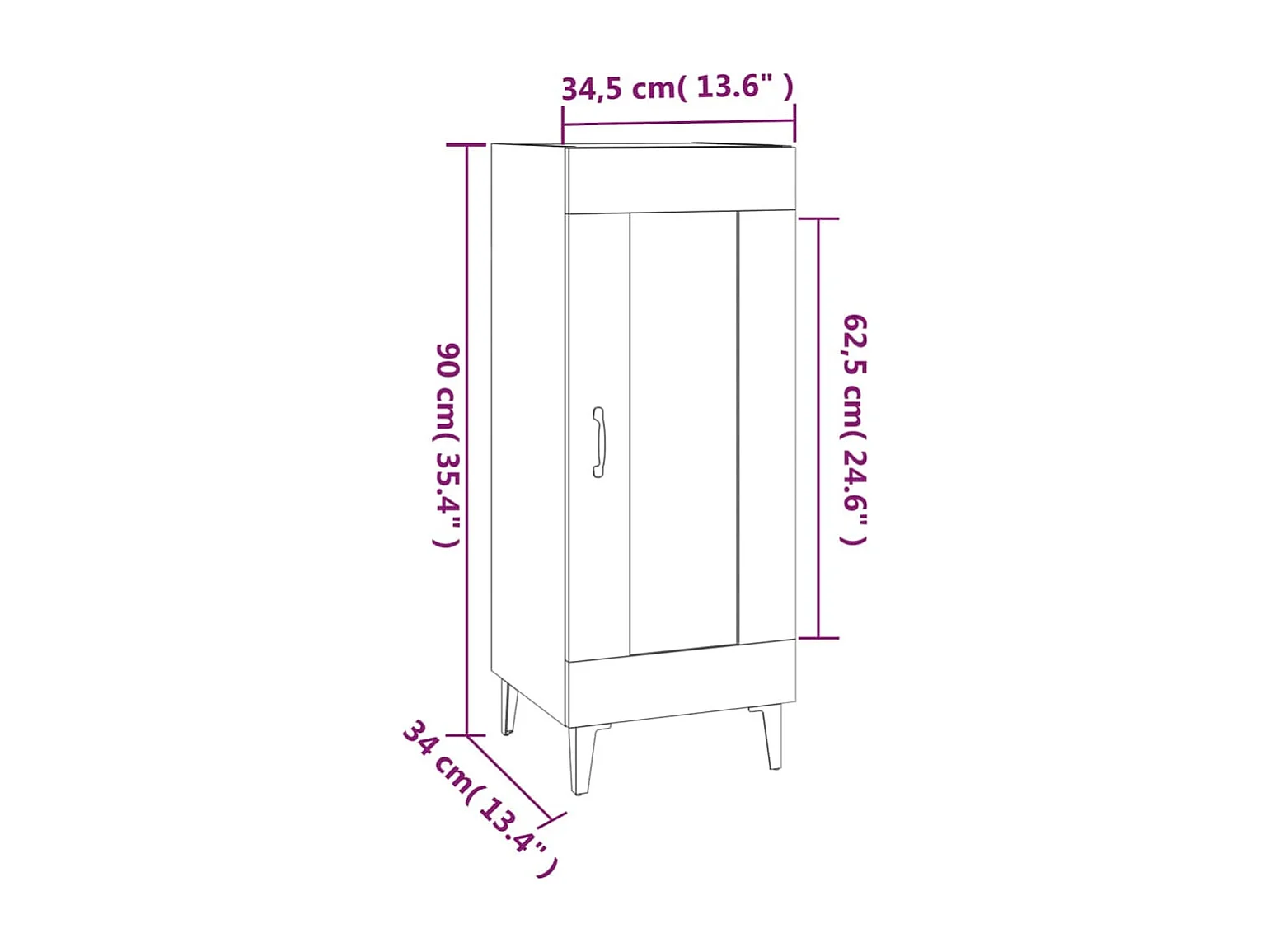 Credenza in rovere nero 34,5 x 34 x 90 cm in legno ingegnerizzato