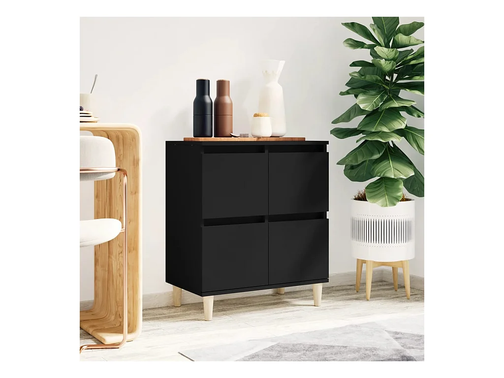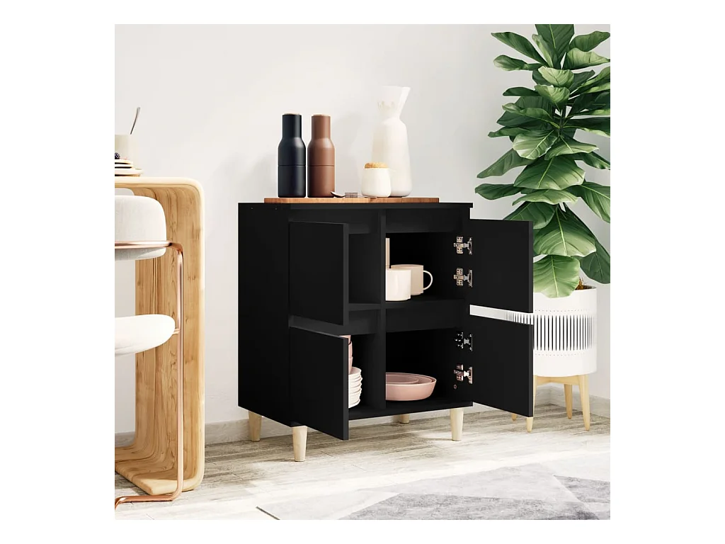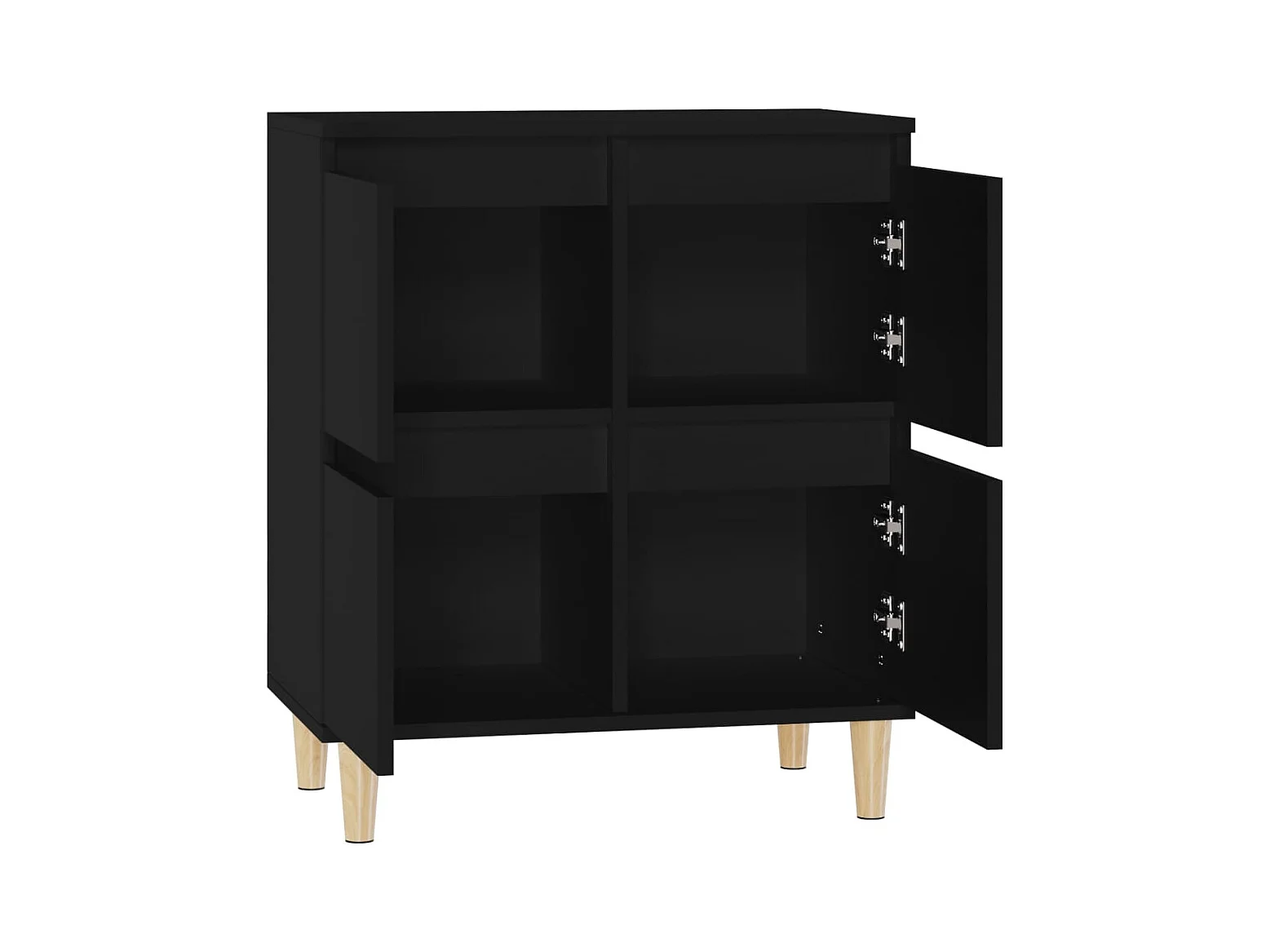 Credenza con gambe in legno massello in legno ingegnerizzato nero
