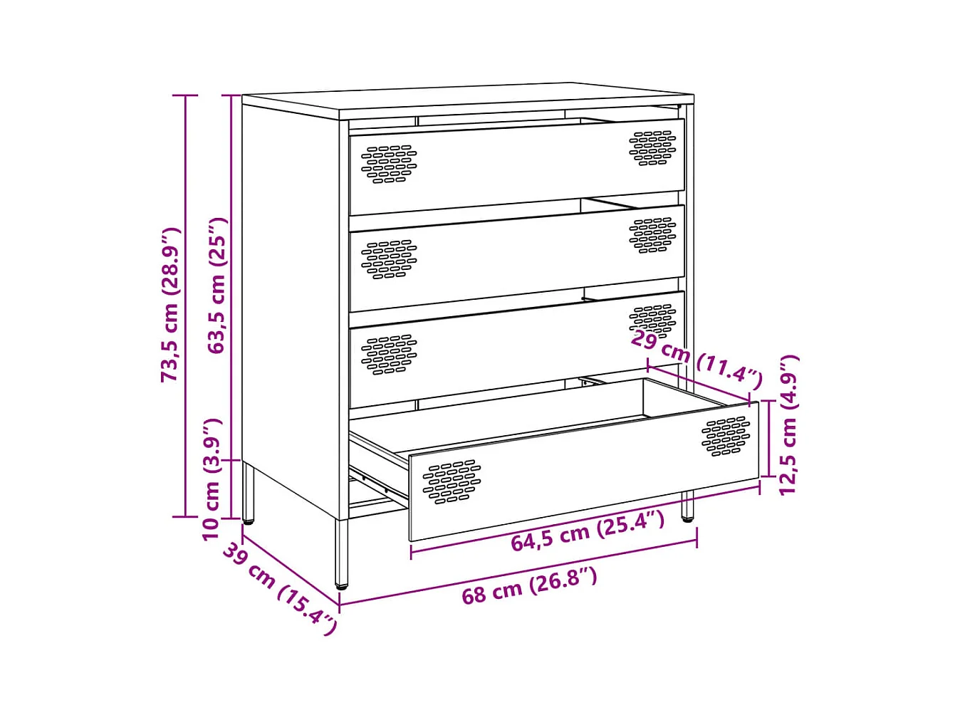 Credenza Nera 68x39x73,5 cm in Acciaio Laminato a Freddo