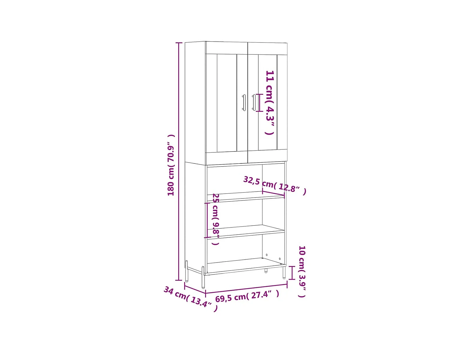 Credenza Nera 69,5x34x180 cm in Legno Multistrato