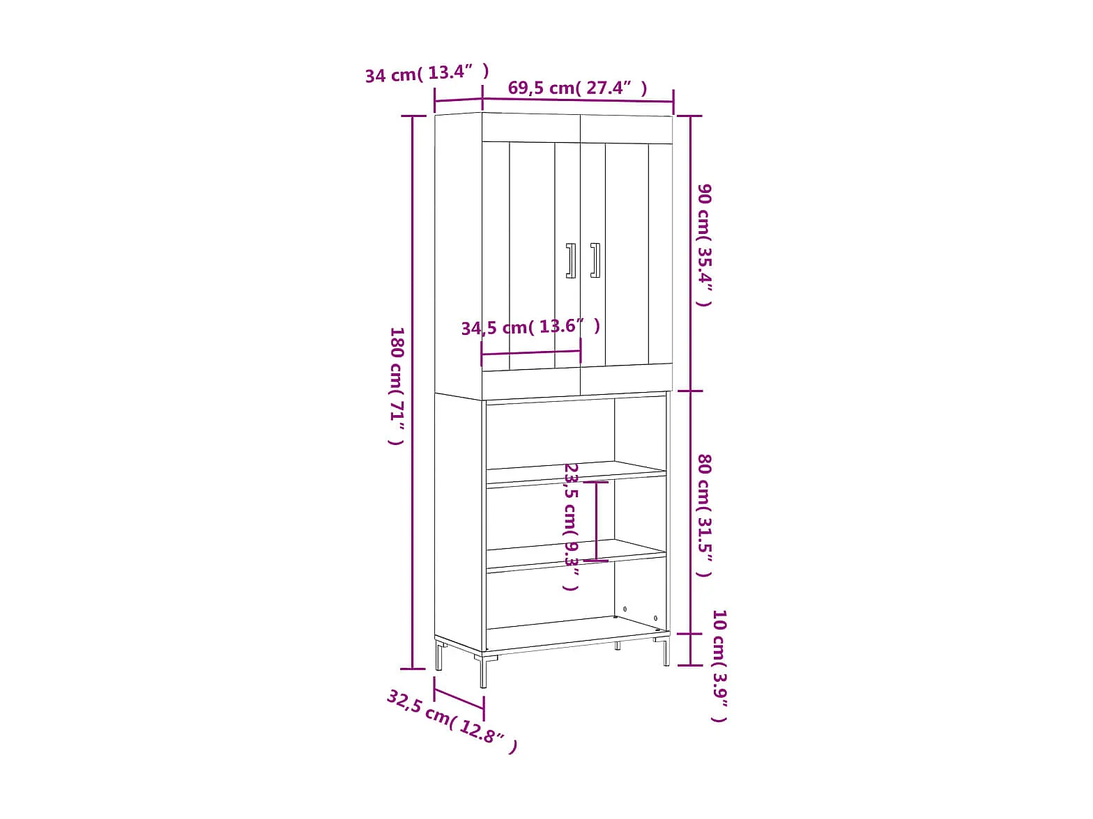 Credenza Nera 69,5x34x180 cm in Legno Multistrato
