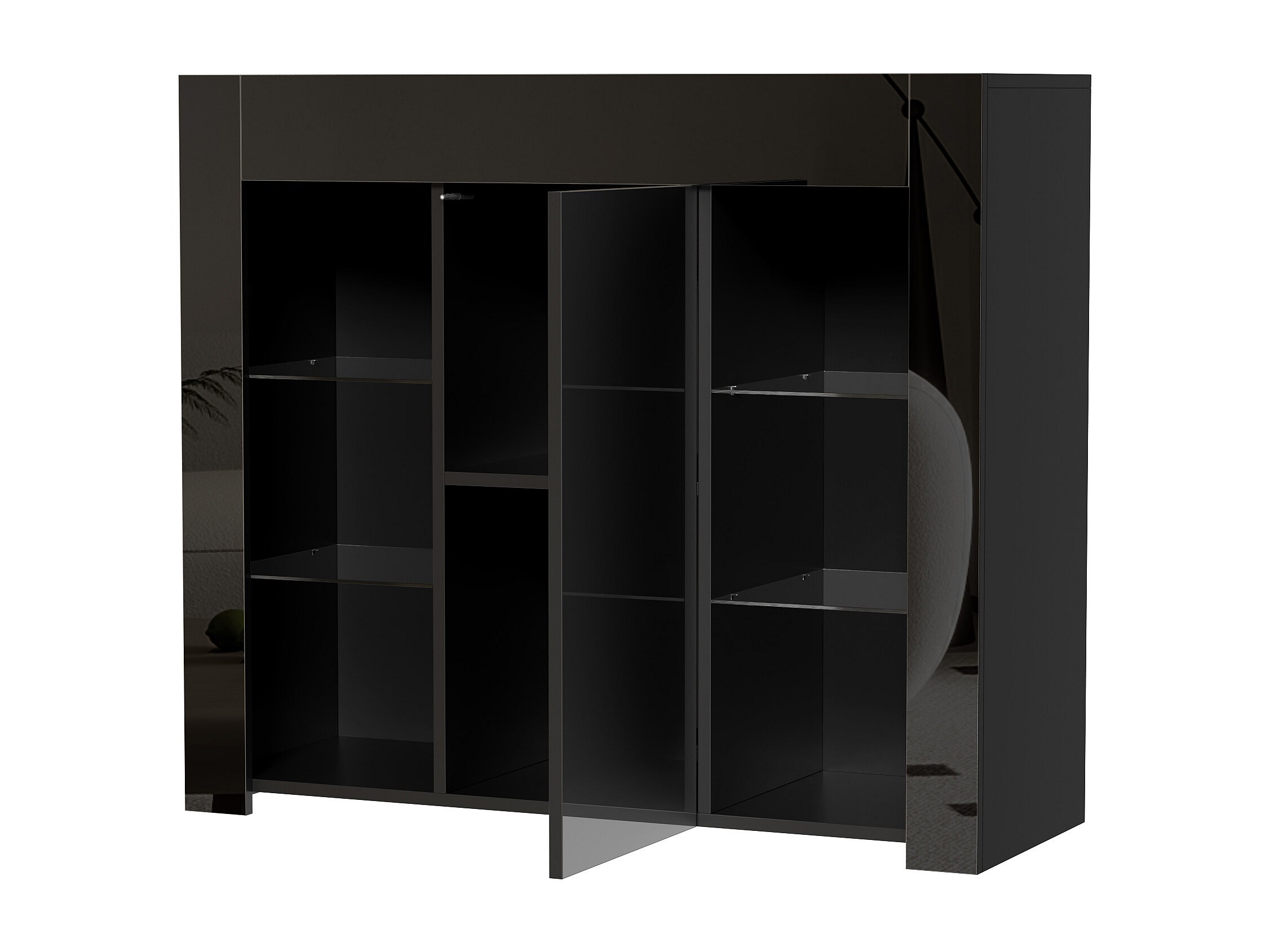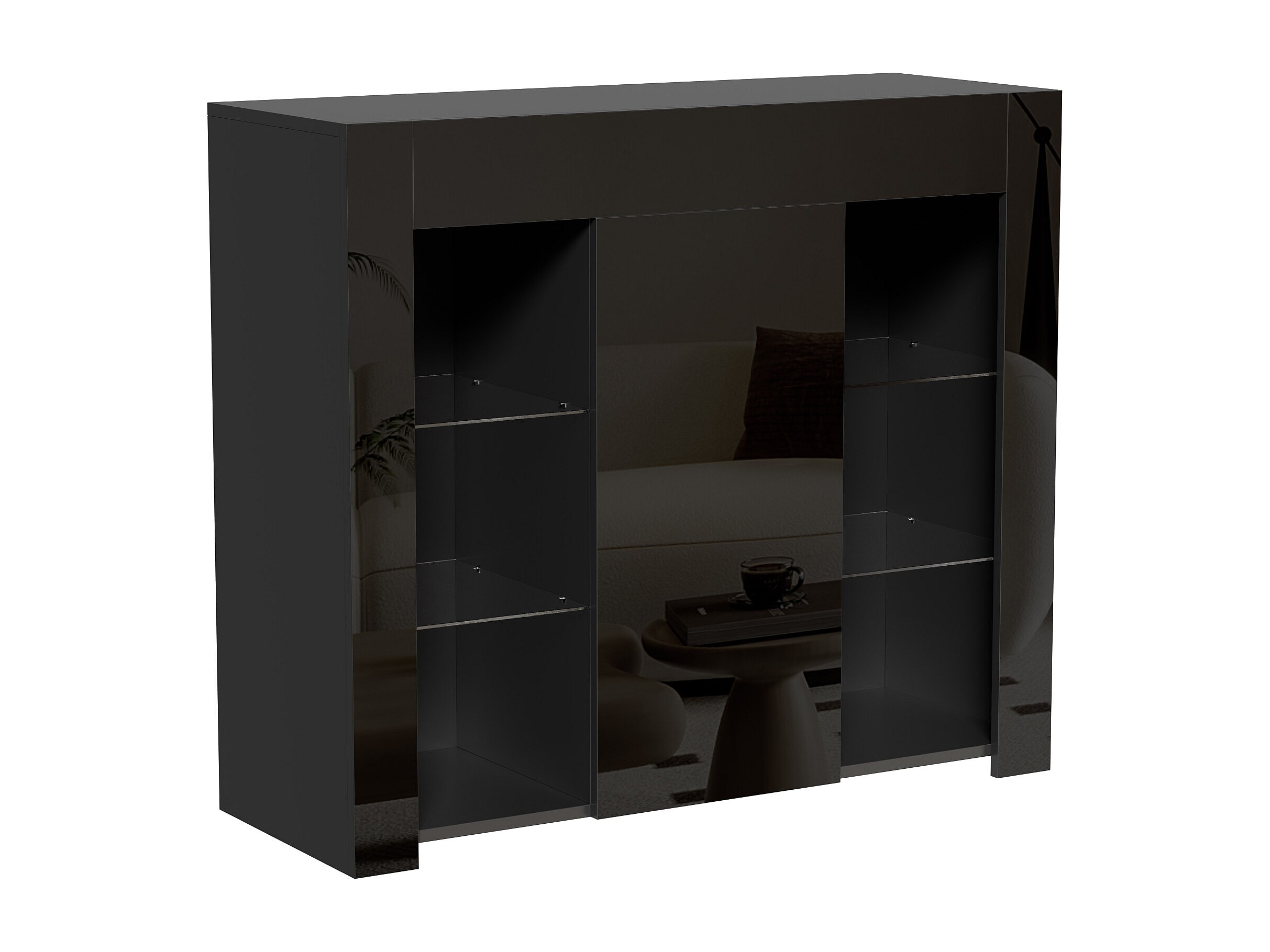 Credenza nera con 1 anta e 4 ripiani in vetro, pannello di particelle 95x35x83 cm