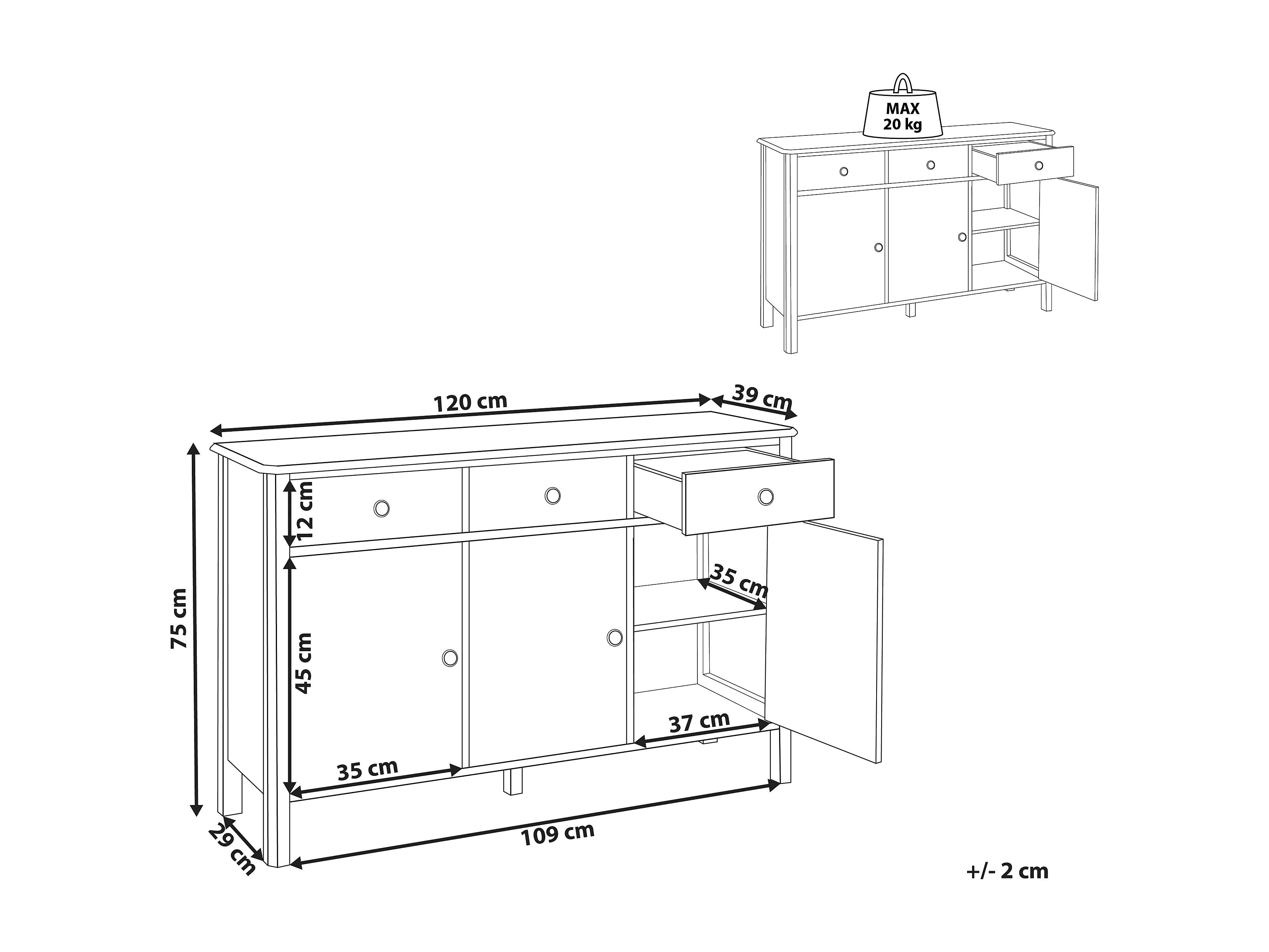 Credenza a 3 ante OLATE Nero