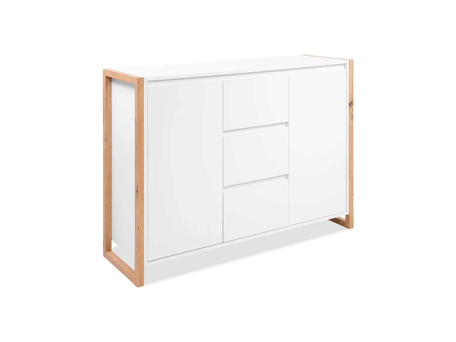 Credenza New Denver2 con 3 cassetti e 2 ante bianco e rovere 120x40x88H